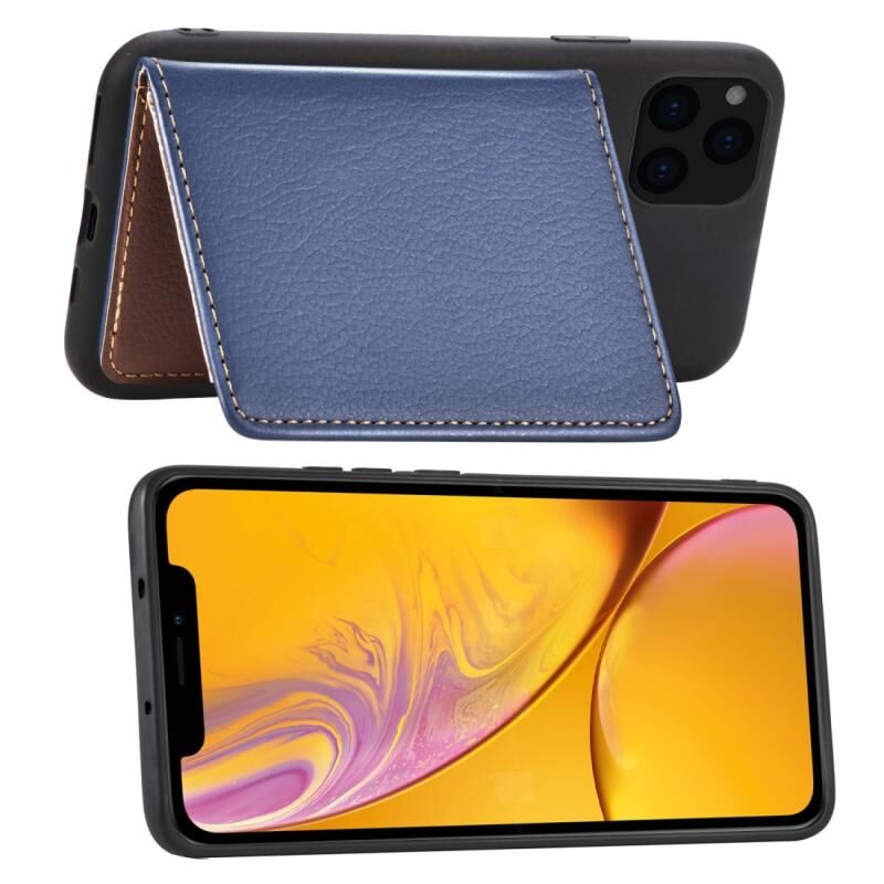 Για iPhone 11 Pro Θήκη Τηλεφώνου από TPU με Υφή Δέρματος Λύτσι, Τσάντα Κάρτας, Βάση Στήριξης & Λειτουργία Πορτοφολιού (Μαύρο)