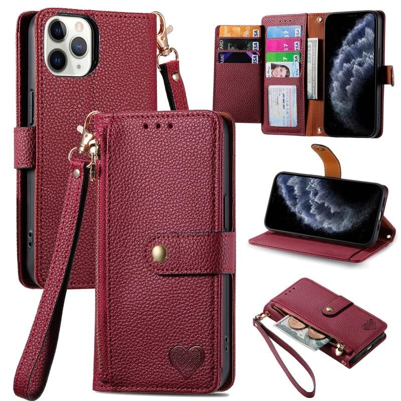 For iPhone 11 Pro Love Zipper Lanyard Leather Phone Case(Red)