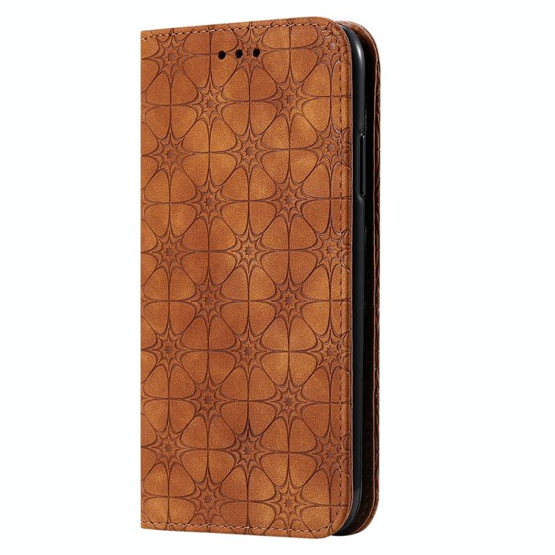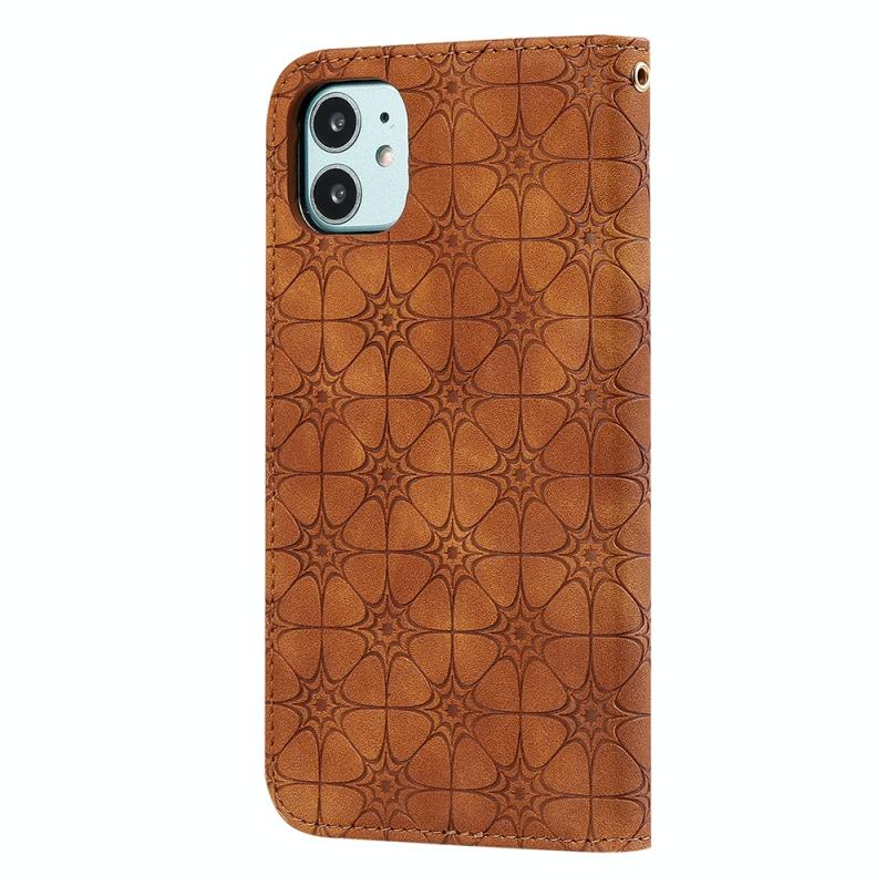 For iPhone 11 Pro Lucky Flowers Embossing Pattern Magnetic Horizontal Flip Leather Casewith Holder & Card Slots(Brown)