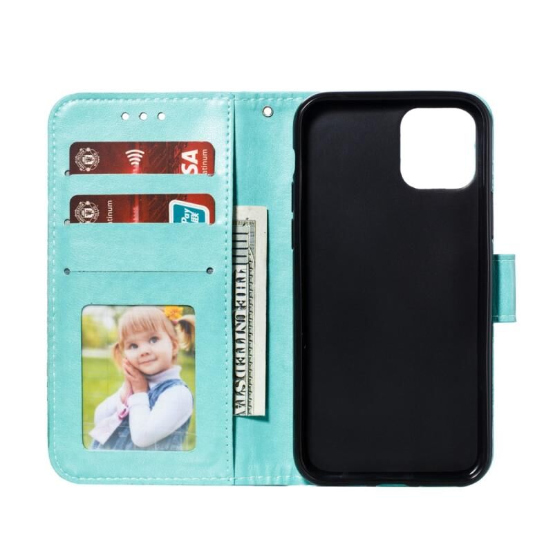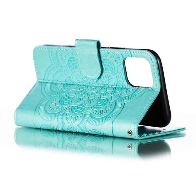 Θήκη δέρματος οριζόντιας αναδίπλωσης για iPhone 11 Pro με σχέδιο Mandala Embossing, με βάση & υποδοχές καρτών & πορτοφόλι & κορνίζα φωτογραφιών & κορδόνι (Χρυσό Ρόδι)