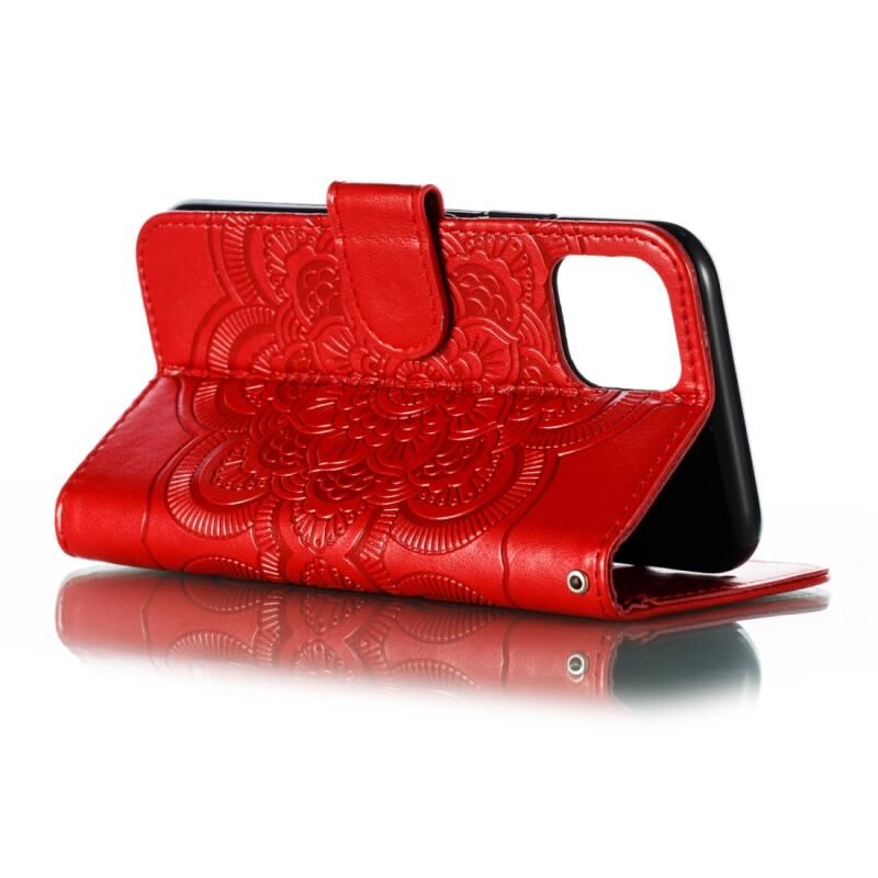 Θήκη δέρματος οριζόντιας αναδίπλωσης για iPhone 11 Pro με σχέδιο Mandala Embossing, με βάση & υποδοχές καρτών & πορτοφόλι & κορνίζα φωτογραφιών & κορδόνι (Χρυσό Ρόδι)