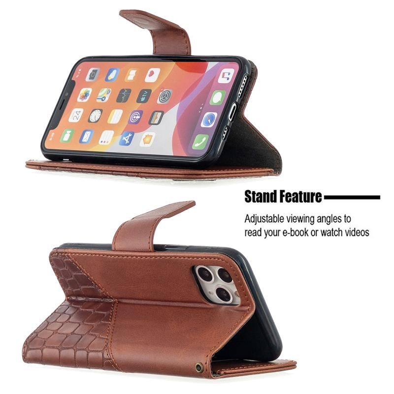 For iPhone 11 Pro Matching Color Crocodile Texture Horizontal Flip PU Leather Case with Wallet & Holder & Card Slots(Brown)