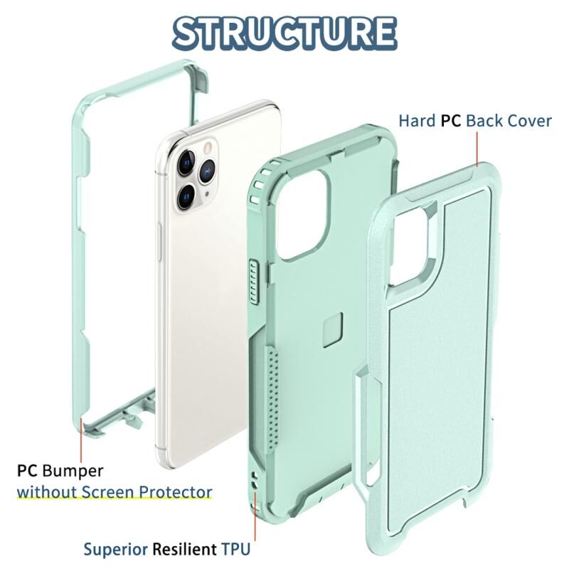 Θήκη κινητού τηλεφώνου 3 σε 1 για iPhone 11 Pro Max από PC + TPU ανθεκτική στις κρούσεις (Μέντας Πράσινο)
