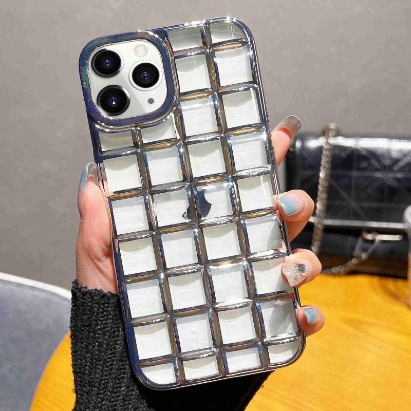 For iPhone 11 Pro Max 3D Grid Phone Case(Silver)