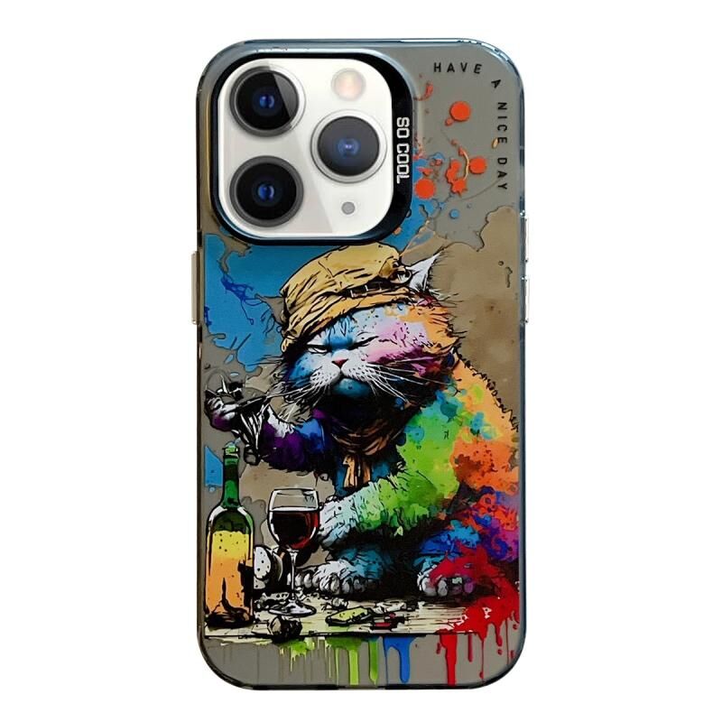 For iPhone 11 Pro Max Animal Pattern Oil Painting Series PC + TPU Phone Case(Drinking Cat)