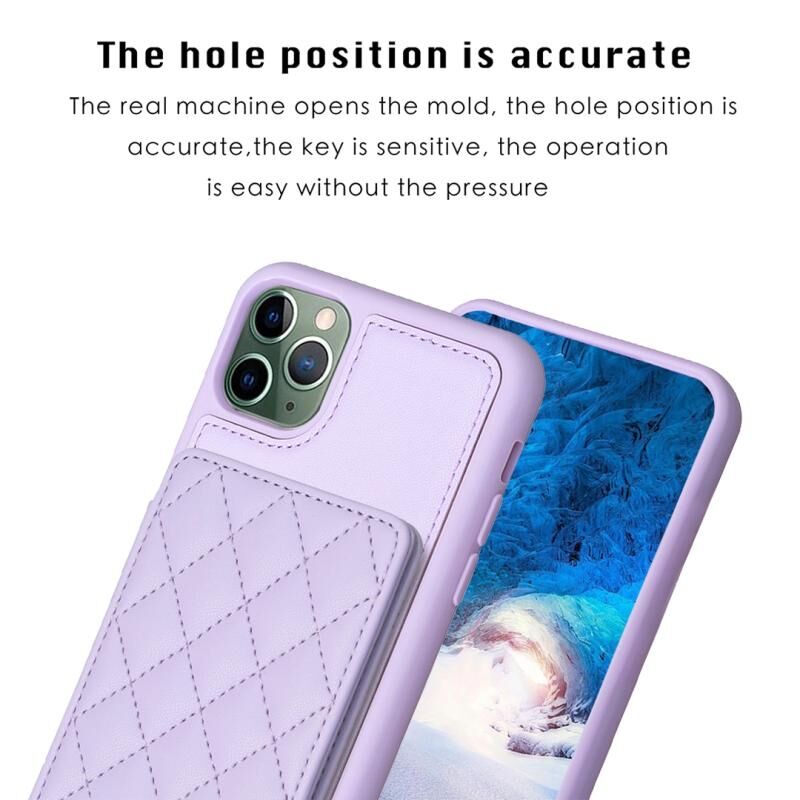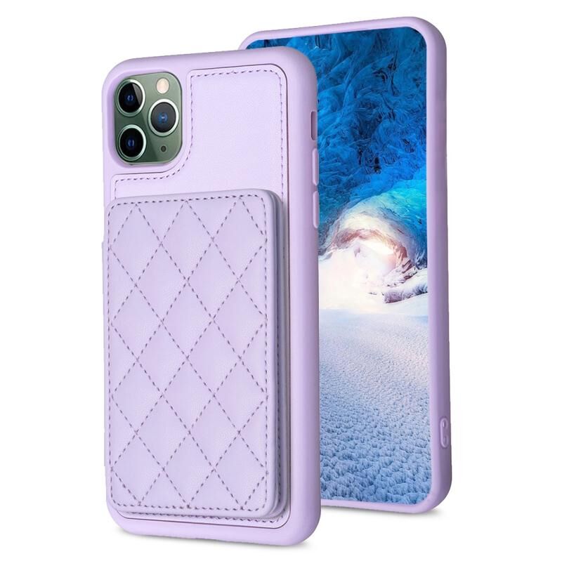 For iPhone 11 Pro Max BF25 Square Plaid Card Bag Holder Phone Case(Purple)