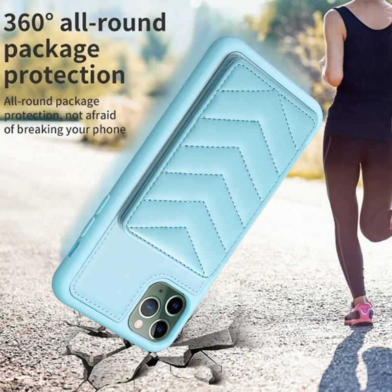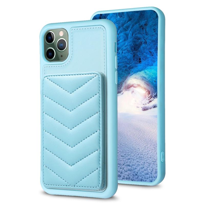 For iPhone 11 Pro Max BF26 Wave Pattern Card Bag Holder Phone Case(Blue)