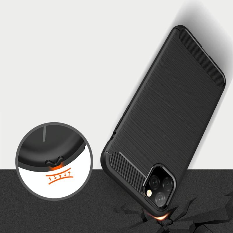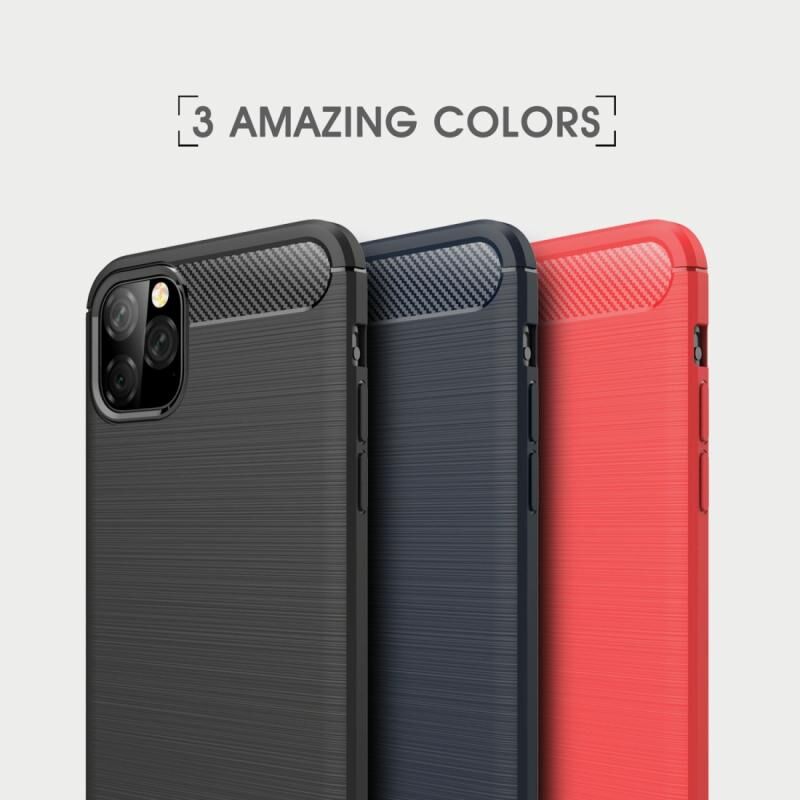 Θήκη για iPhone 11 Pro Max από TPU με υφή βουρτσισμένου ανθρακονήματος (Red)