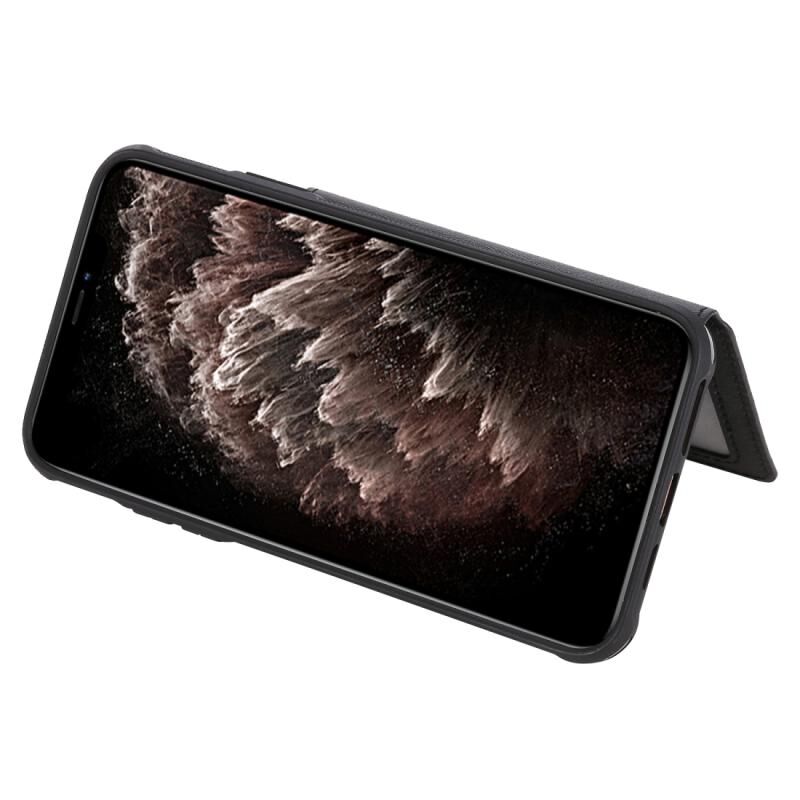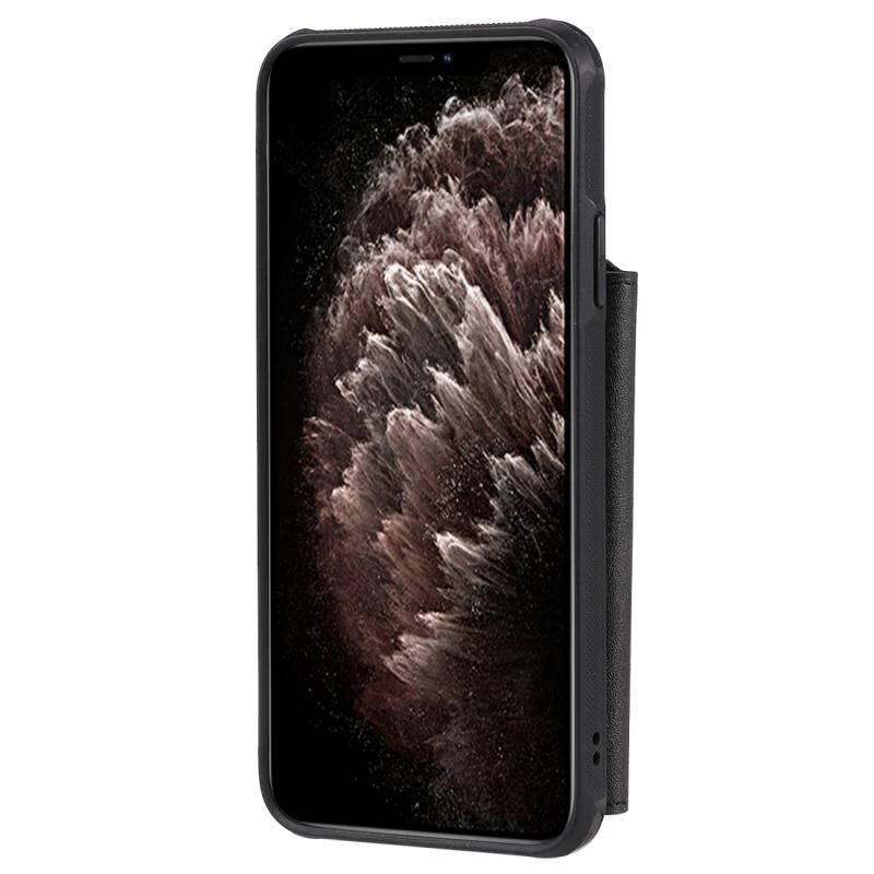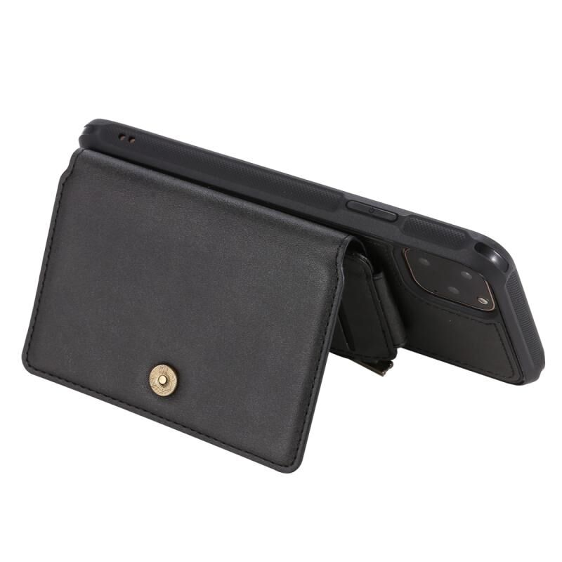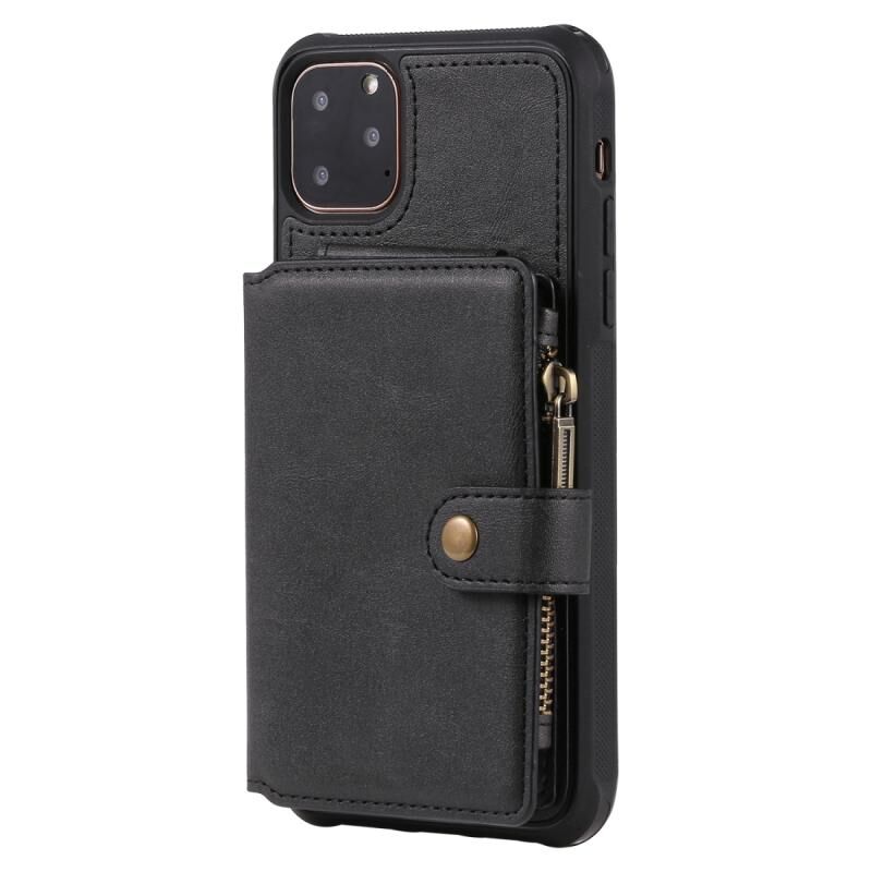 For iPhone 11 Pro Max Buckle Zipper Shockproof Protective Case with Holder & Card Slots & Wallet & Lanyard & Photos Frames(Black)