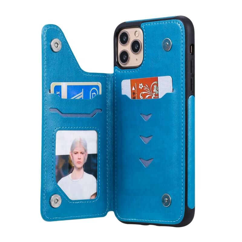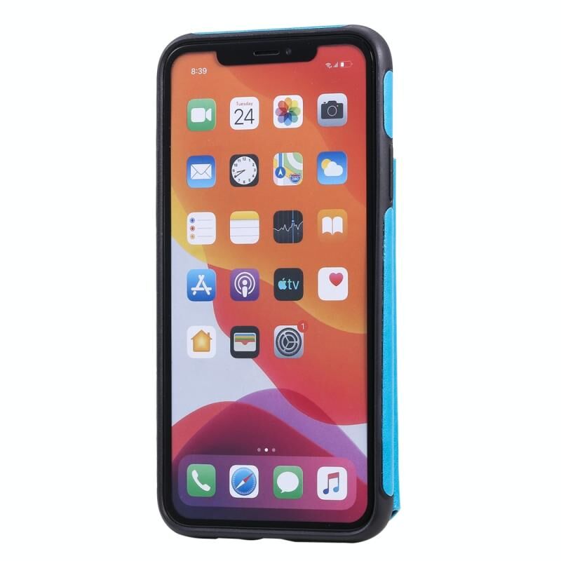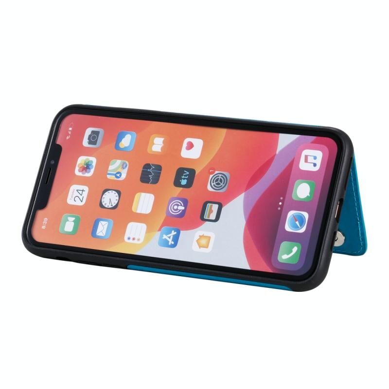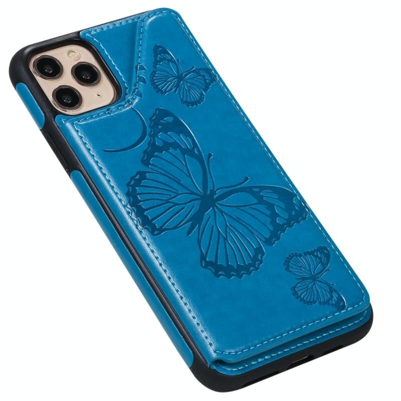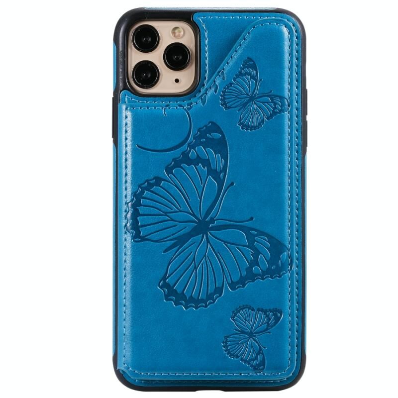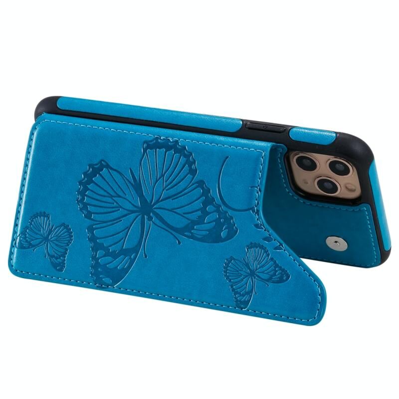 For iPhone 11 Pro Max Butterfly Embossing Pattern Shockproof Protective Case with Holder & Card Slots & Photo Frame(Blue)