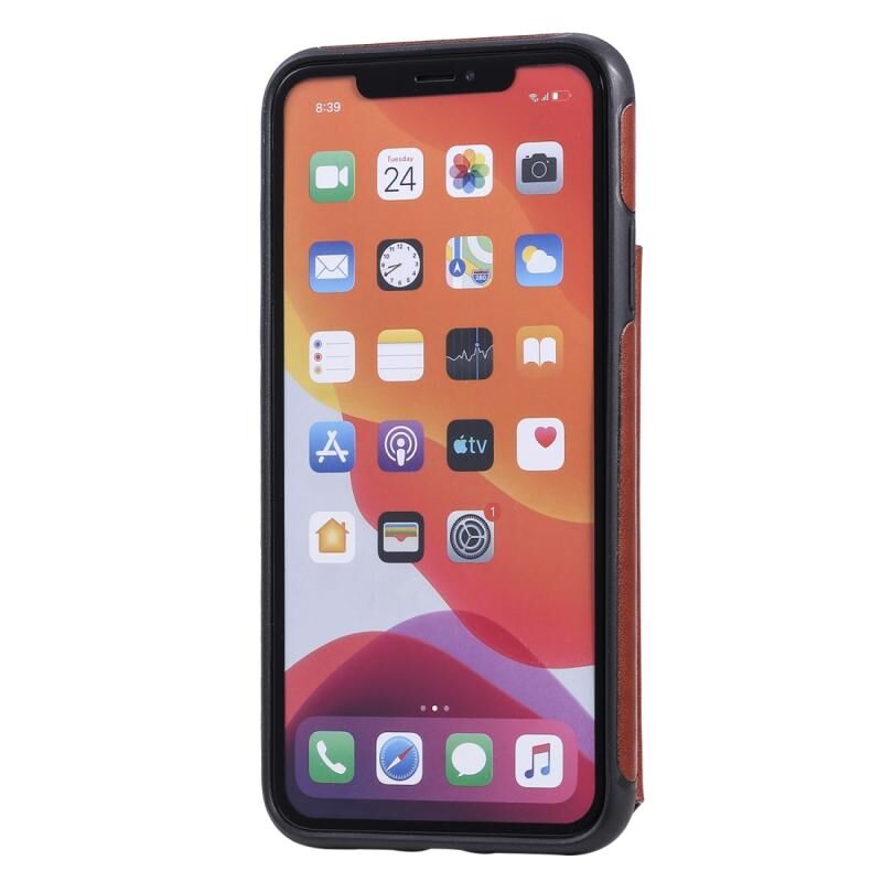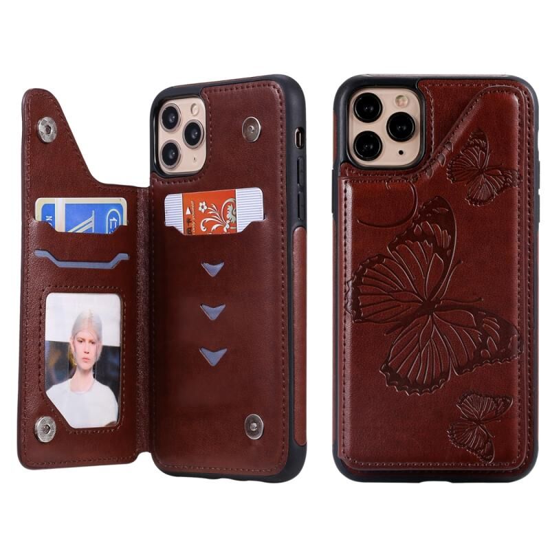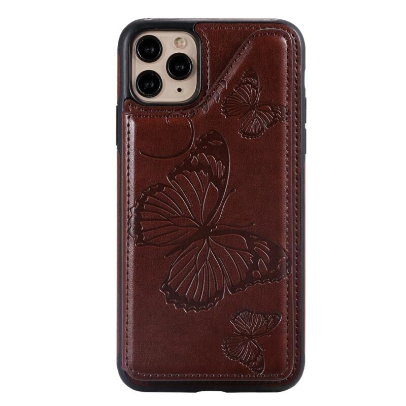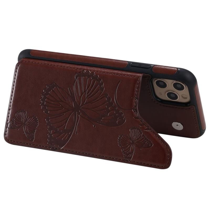 For iPhone 11 Pro Max Butterfly Embossing Pattern Shockproof Protective Case with Holder & Card Slots & Photo Frame(Brown)