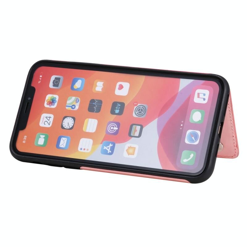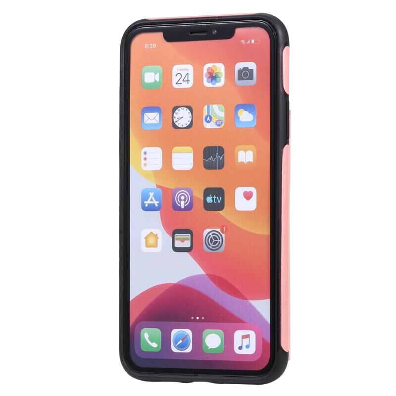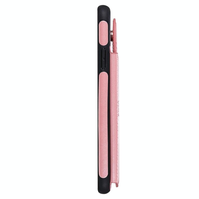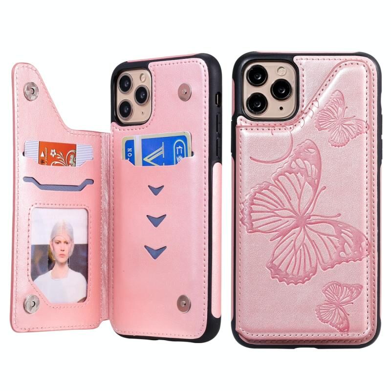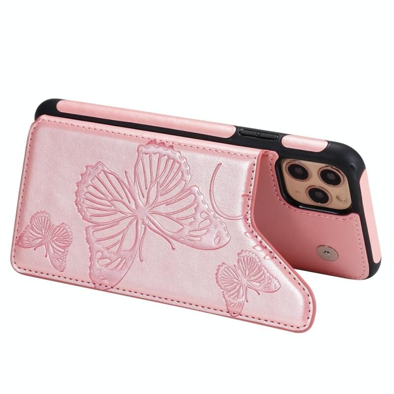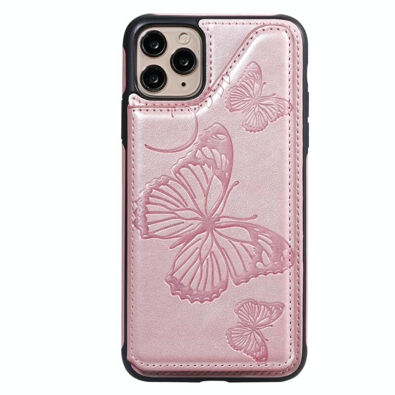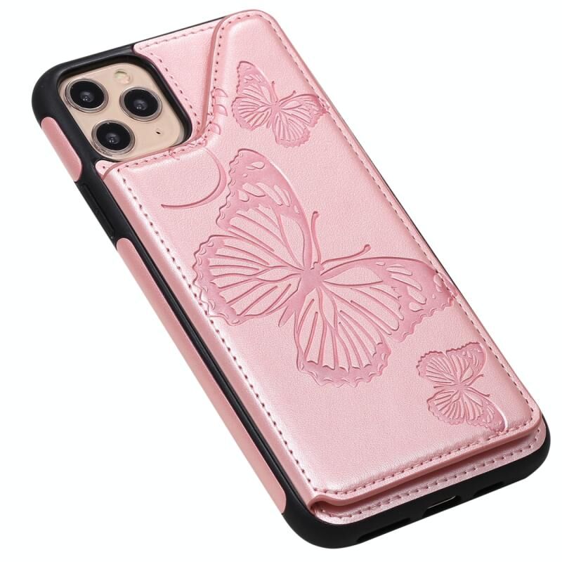 For iPhone 11 Pro Max Butterfly Embossing Pattern Shockproof Protective Case with Holder & Card Slots & Photo Frame(Rose Gold)