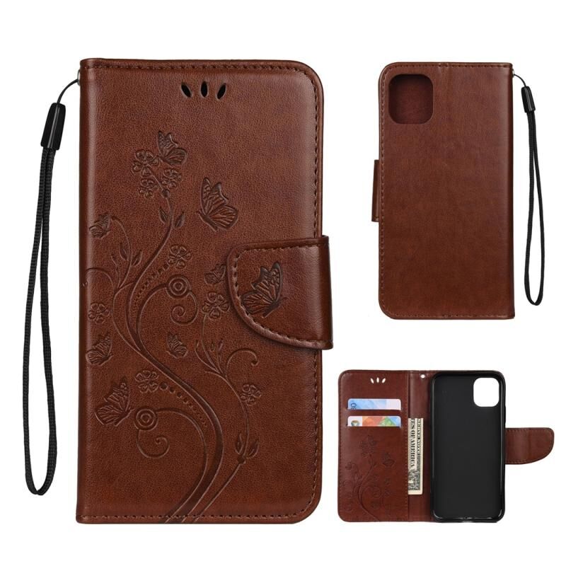 For iPhone 11 Pro Max Butterfly Flower Pattern Horizontal Flip Leather Case with Holder & Card Slots & Wallet(Brown)