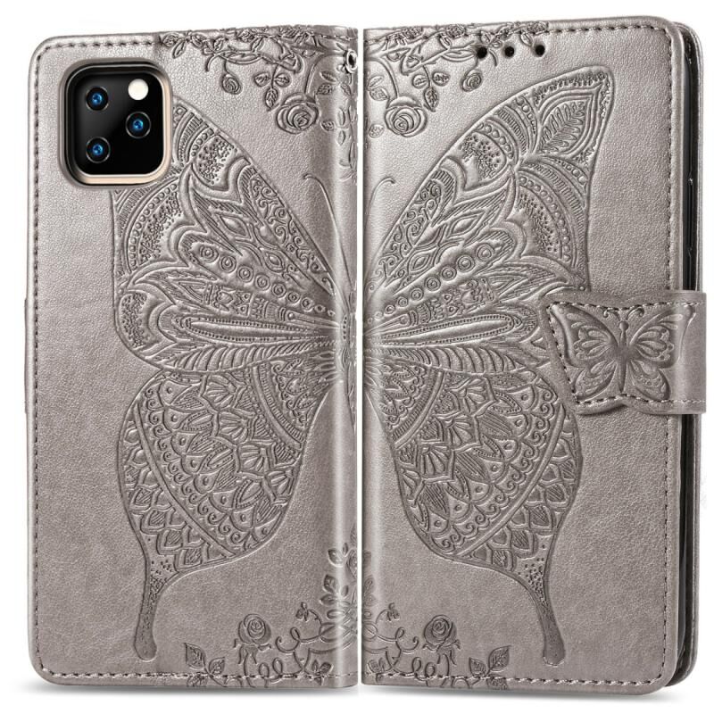 Θήκη δέρματος οριζόντιας αναδίπλωσης για iPhone 11 Pro Max με ανάγλυφο σχέδιο πεταλούδας, λουλουδιών, βάση στήριξης, θήκες καρτών, πορτοφόλι και λουρί (Μαύρο)