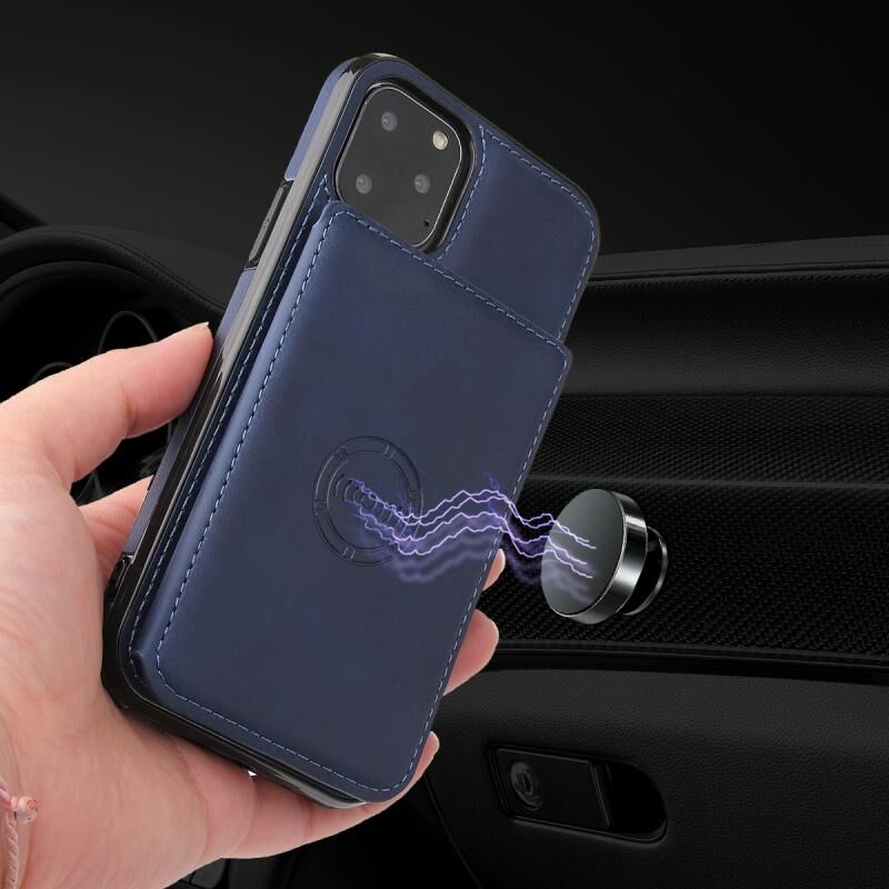 For iPhone 11 Pro Max Calf Texture Magnetic Case (Blue)