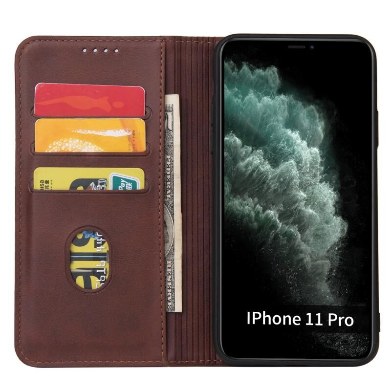 For iPhone 11 Pro Max Calf Texture Magnetic Horizontal Flip Leather Case with Holder & Card Slots & Wallet (Brown)