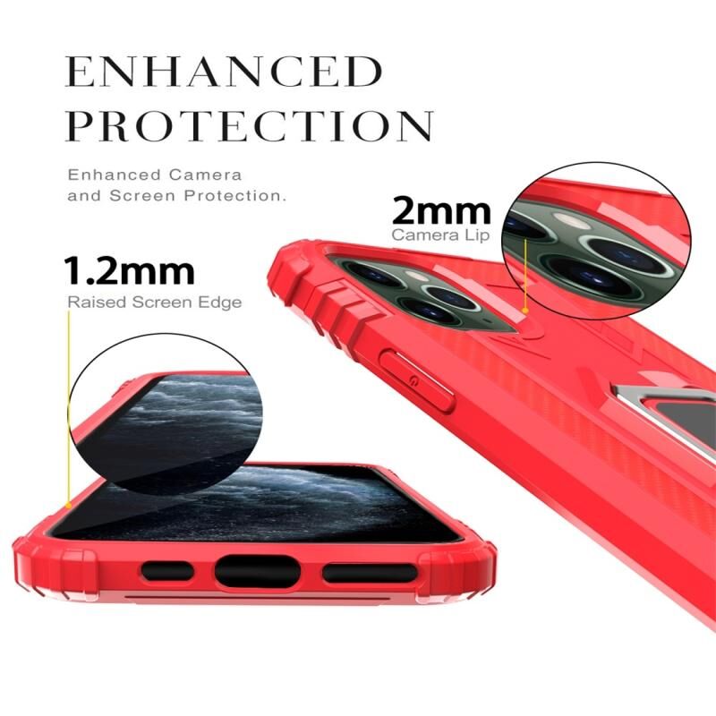 Θήκη προστασίας από ανθρακονήματα για iPhone 11 Pro Max με περιστρεφόμενη βάση δακτυλιδιού 360 μοιρών (Κόκκινο)