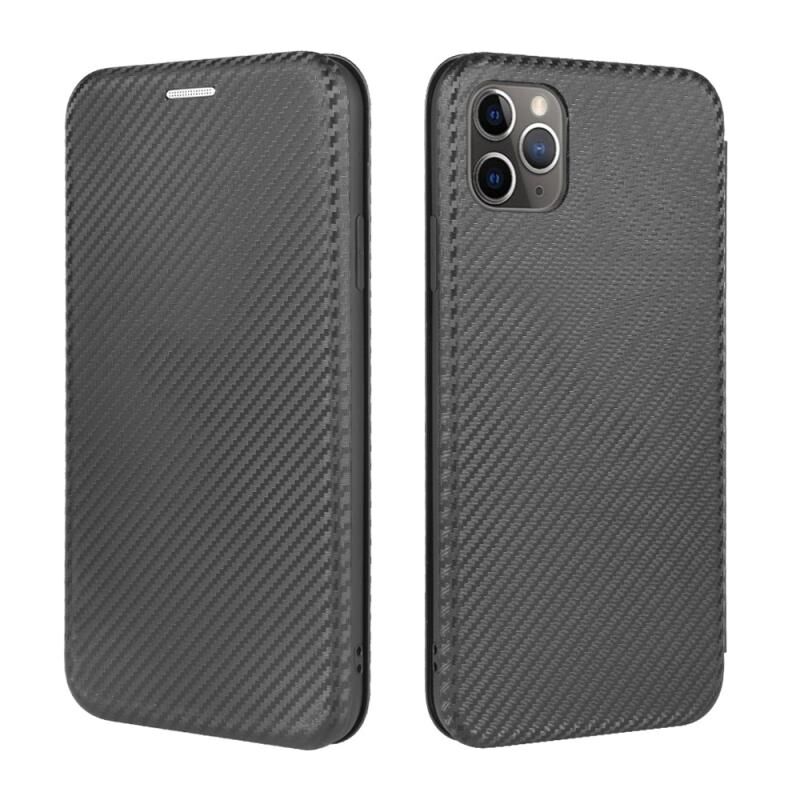 For iPhone 11 Pro Max Carbon Fiber Texture Horizontal Flip TPU + PC + PU Leather Case with Card Slot(Black)