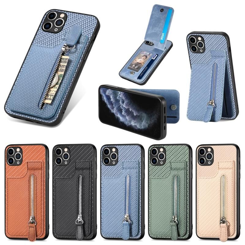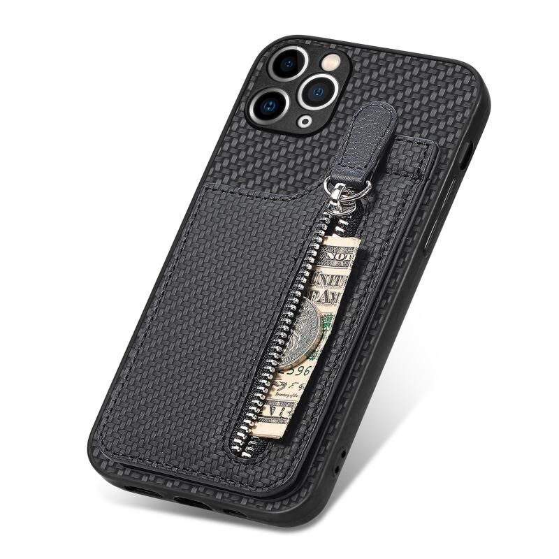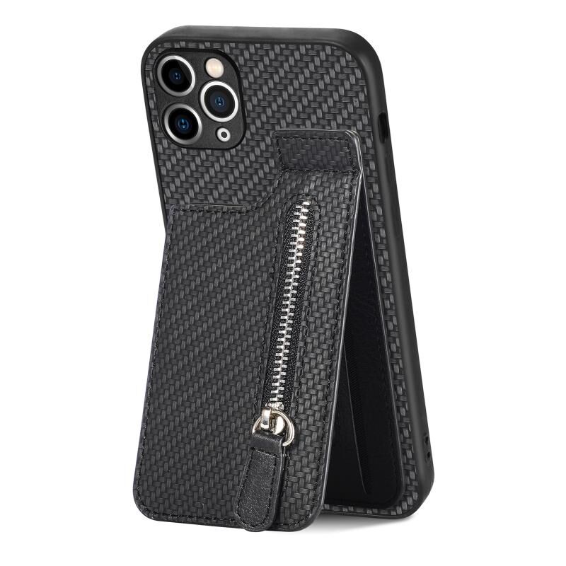 For iPhone 11 Pro Max Carbon Fiber Vertical Flip Zipper Phone Case(Black)