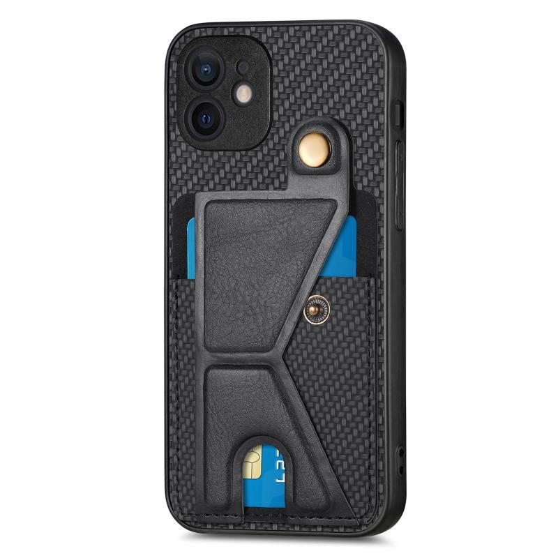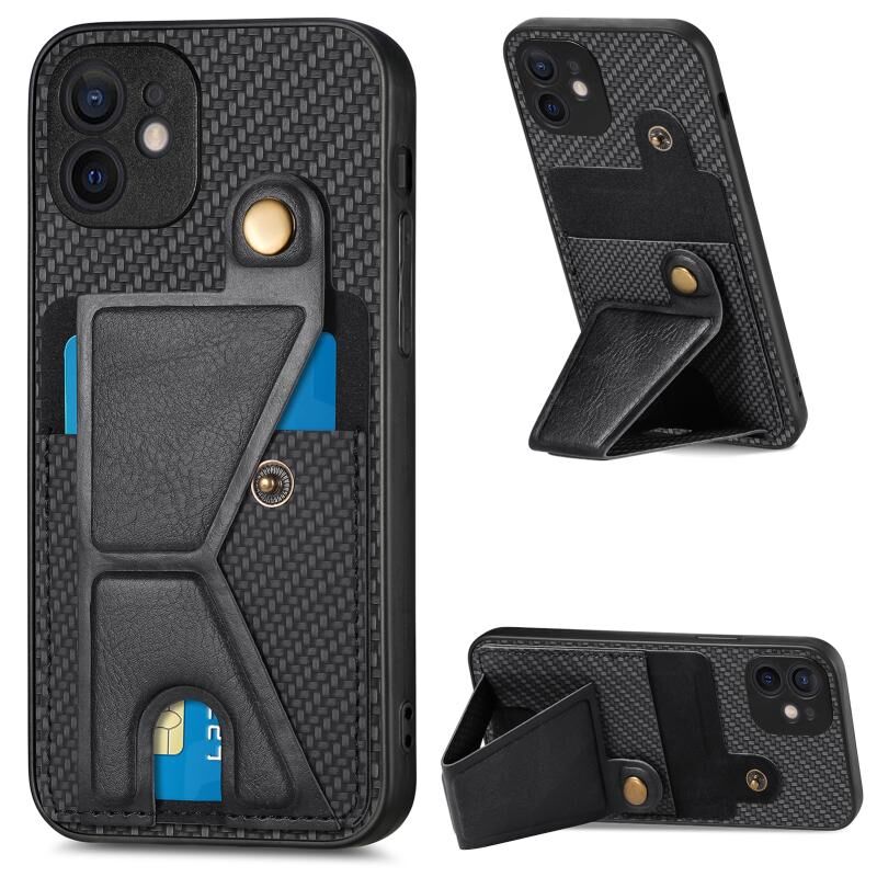 Θήκη κινητού τηλεφώνου για iPhone 11 Pro Max από ανθρακονήματα, τύπου πορτοφολιού, με κάρτες και σχήμα K (Μαύρο)