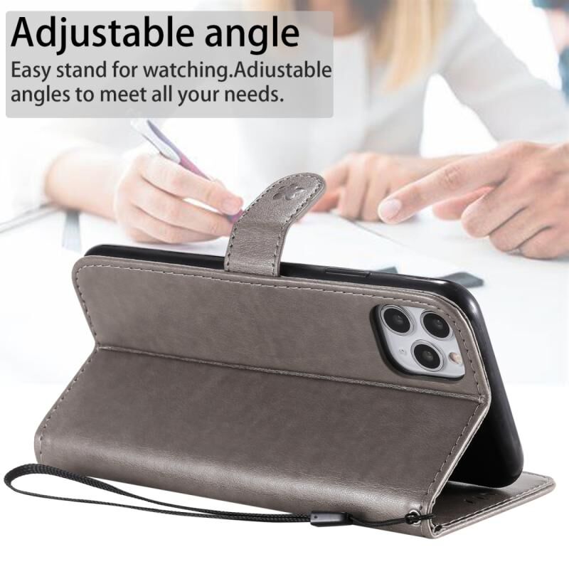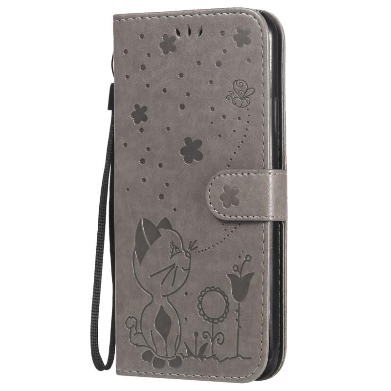 For iPhone 11 Pro Max Cat Bee Embossing Pattern Shockproof Horizontal Flip Leather Case with Holder & Card Slots & Wallet(Grey)