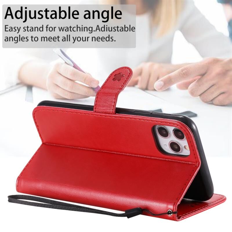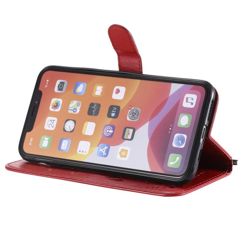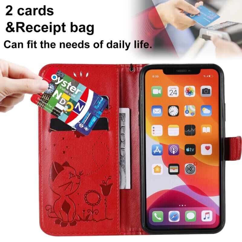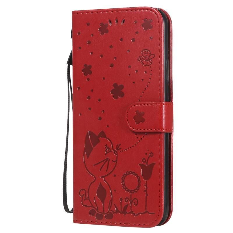For iPhone 11 Pro Max Cat Bee Embossing Pattern Shockproof Horizontal Flip Leather Case with Holder & Card Slots & Wallet(Red)