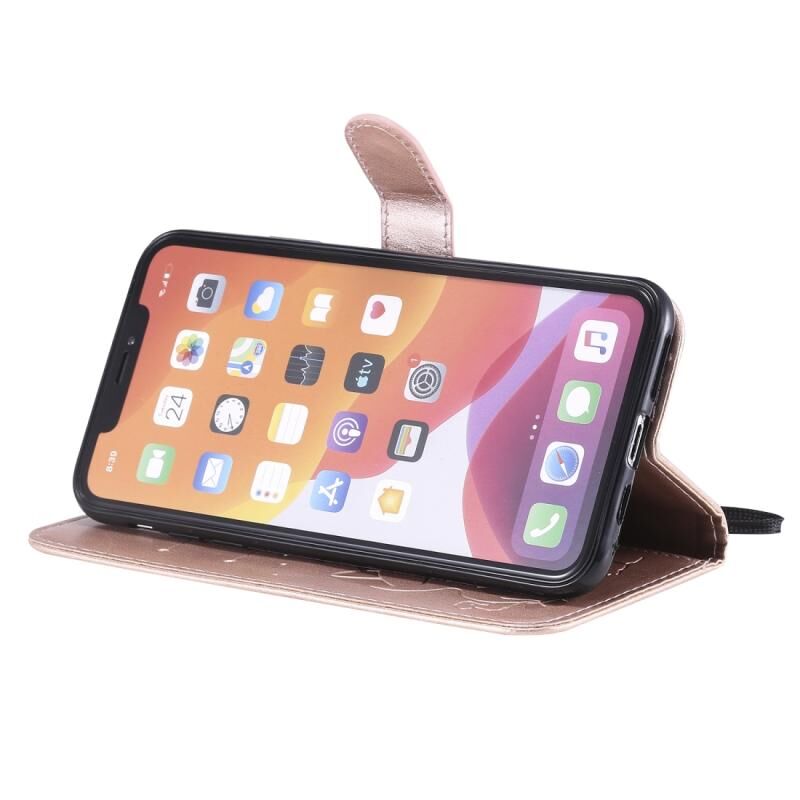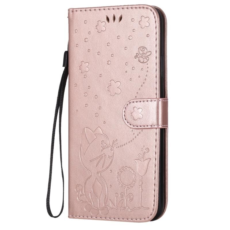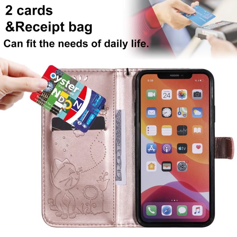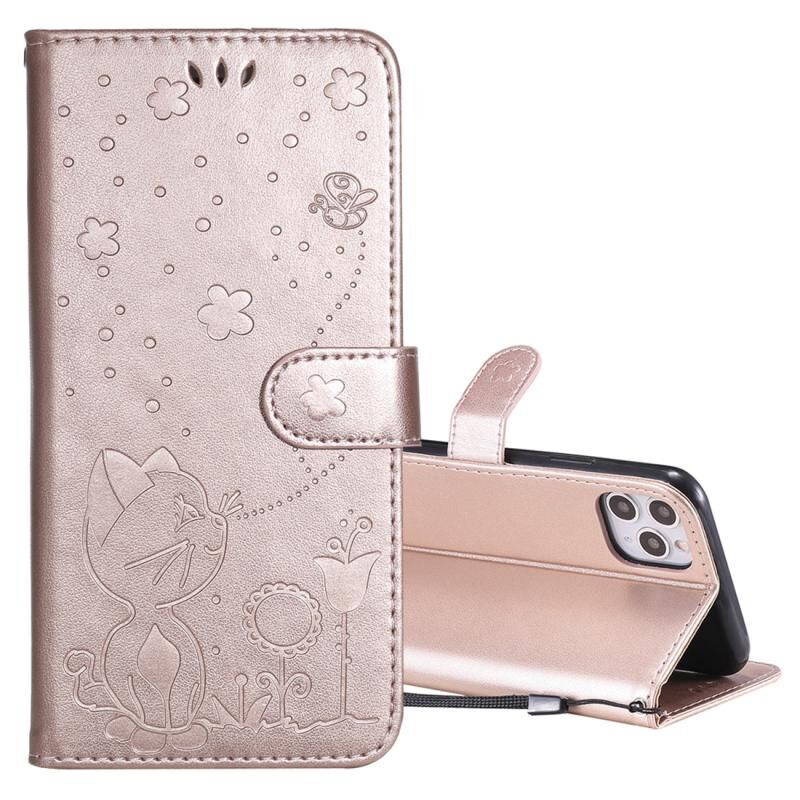 For iPhone 11 Pro Max Cat Bee Embossing Pattern Shockproof Horizontal Flip Leather Case with Holder & Card Slots & Wallet(Rose Gold)