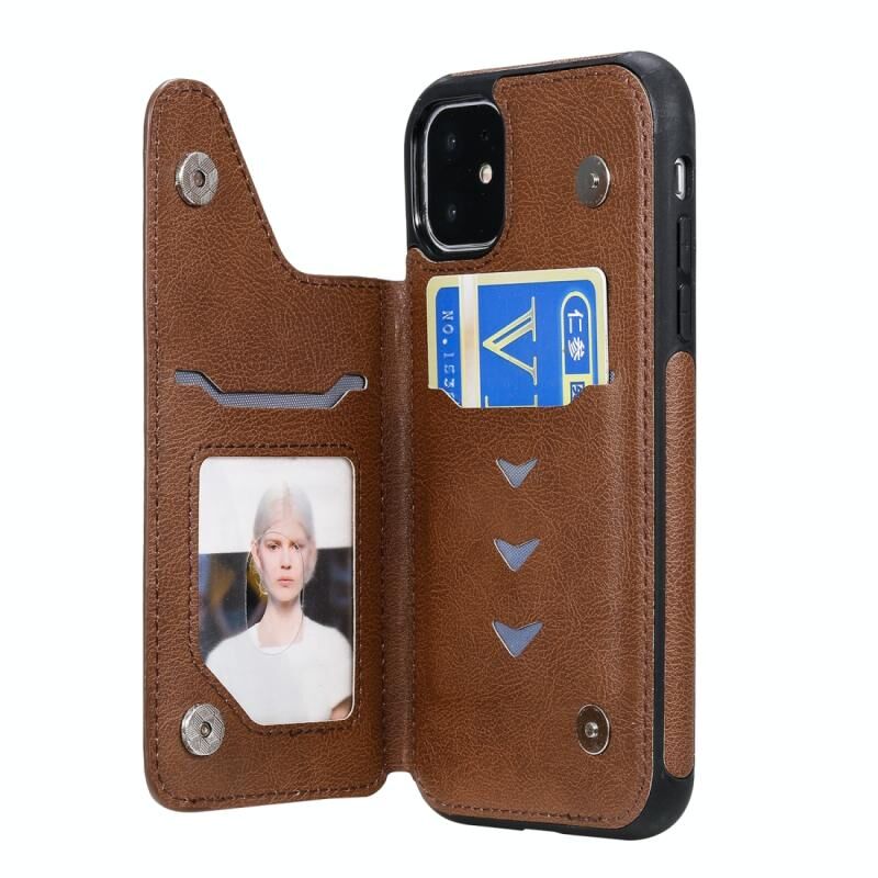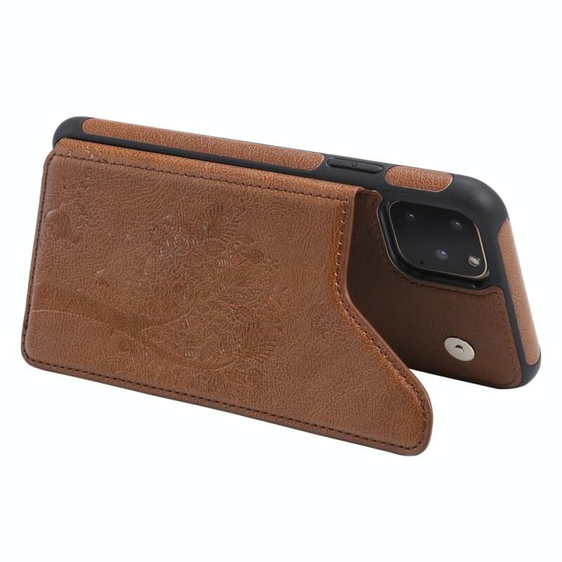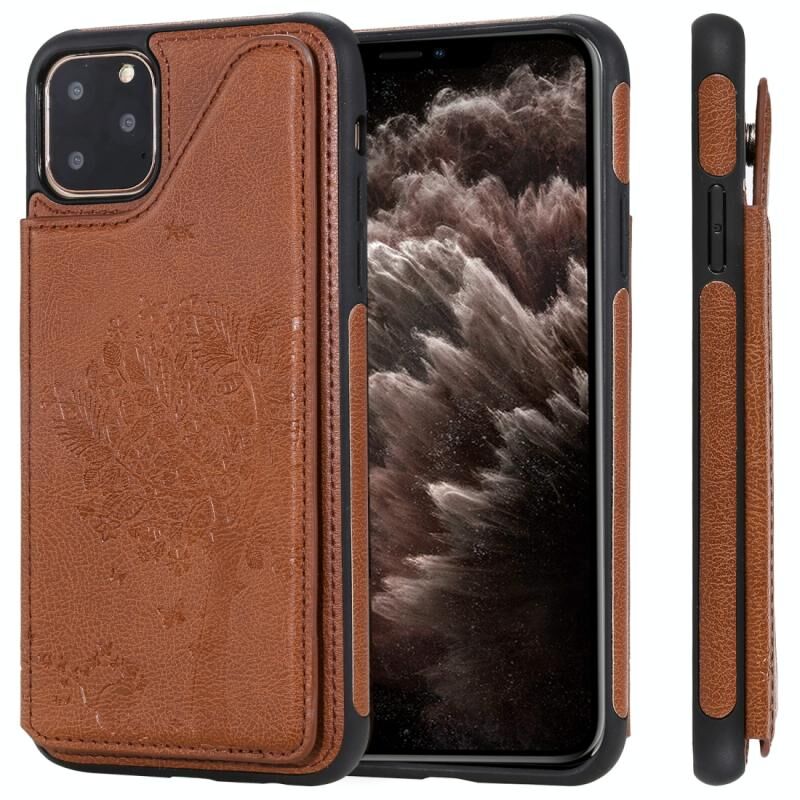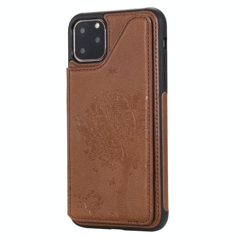For iPhone 11 Pro Max Cat Tree Embossing Pattern Shockproof Protective Case with Card Slots & Photo Frame & Holder(Brown)