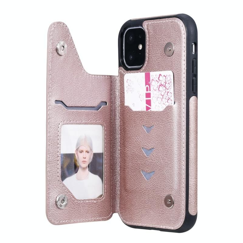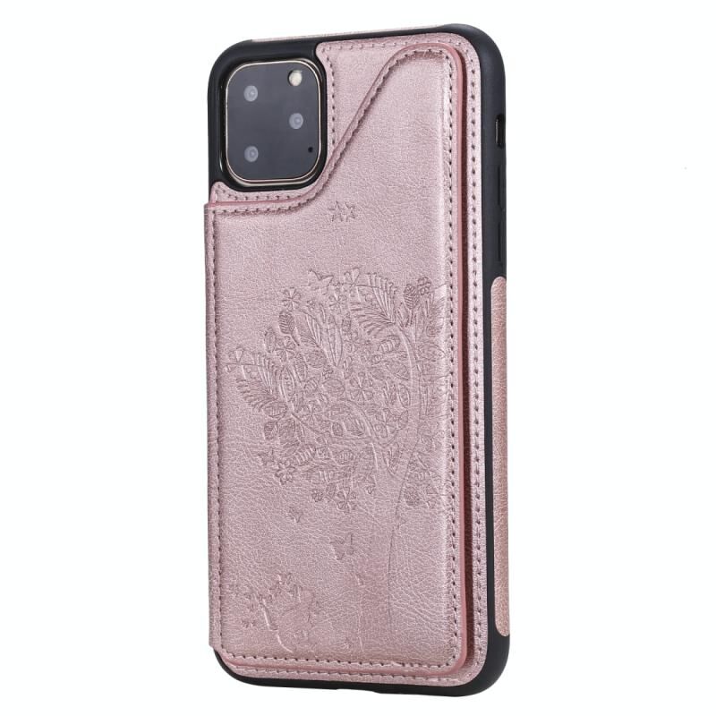 For iPhone 11 Pro Max Cat Tree Embossing Pattern Shockproof Protective Case with Card Slots & Photo Frame & Holder(Rose Gold)