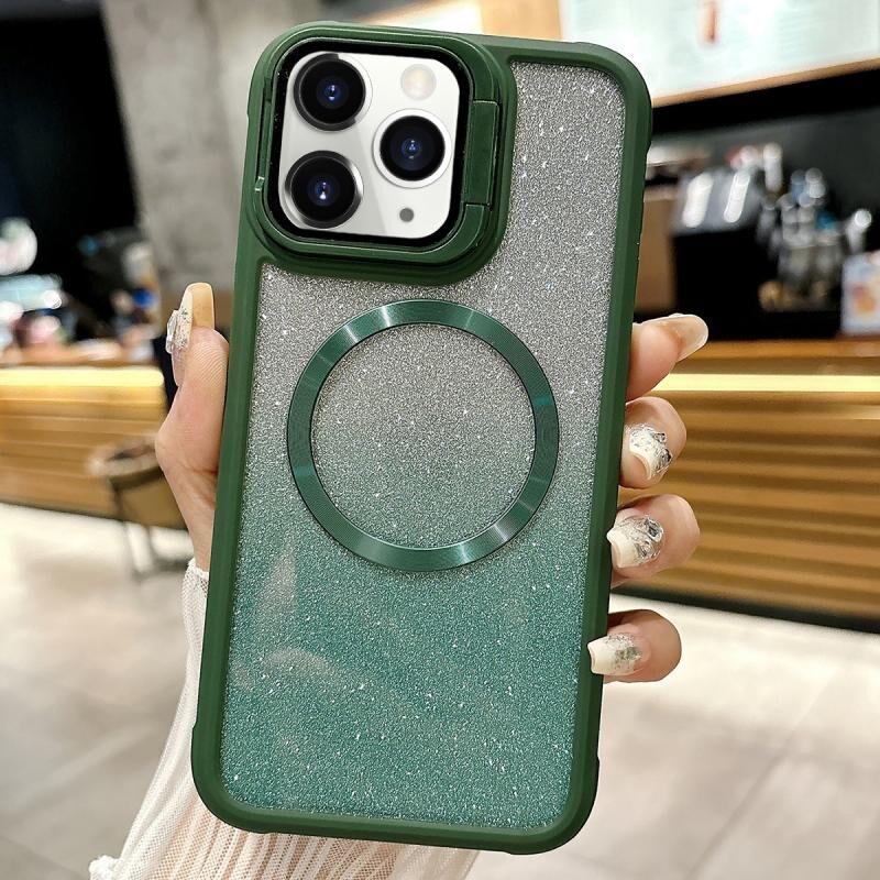 For iPhone 11 Pro Max CD-grain Gradient Glitter Magsafe Acrylic Hybrid TPU Phone Case(Green)