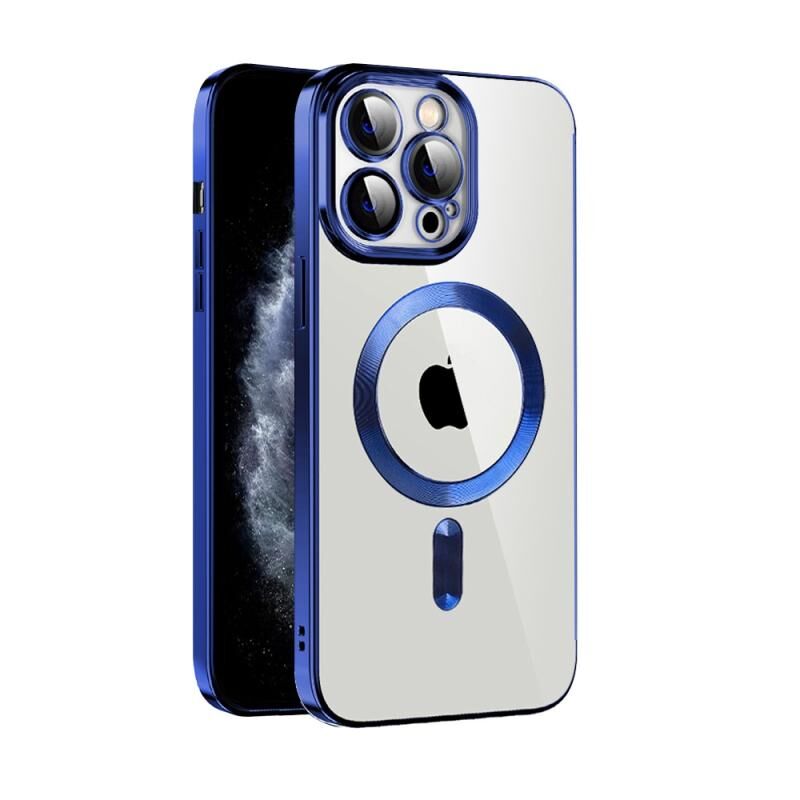 For iPhone 11 Pro Max CD Texture Plating TPU MagSafe Phone Case with Lens Film(Royal Blue)