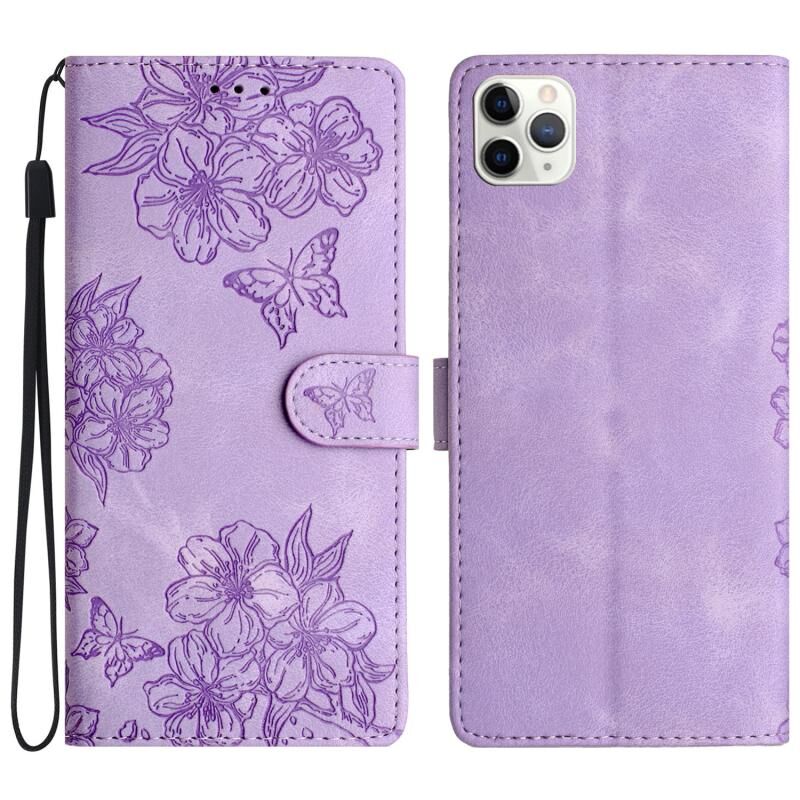 For iPhone 11 Pro Max Cherry Blossom Butterfly Skin Feel Embossed PU Phone Case(Purple)