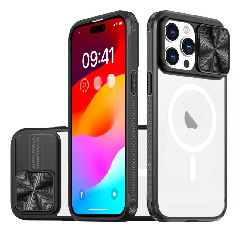 Θήκη κινητού τηλεφώνου πλήρους κάλυψης για iPhone 11 Pro Max, διαφανές ακρυλικό + PC + TPU, με συρόμενο κάλυμμα φακού MagSafe (Ναυτικό Μπλε)