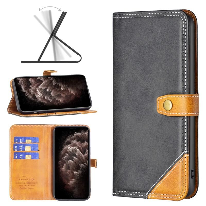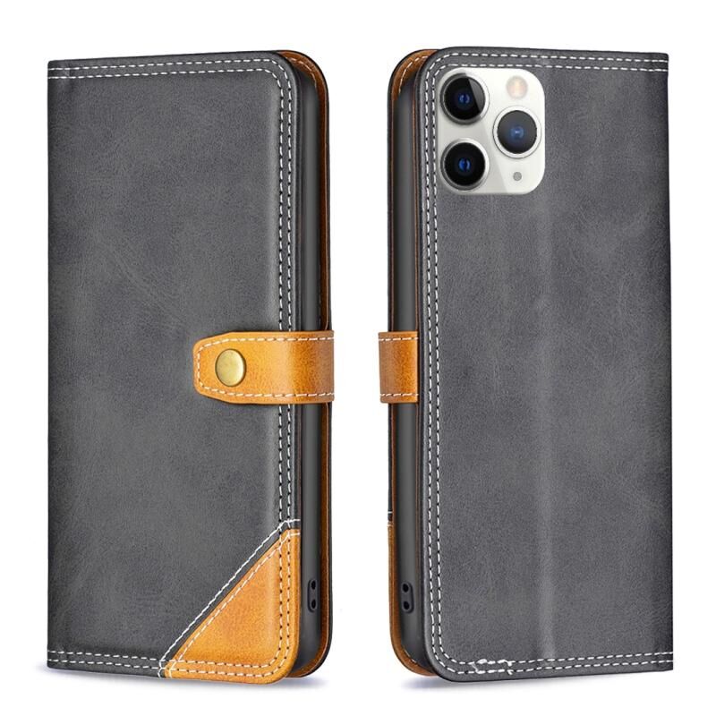 Θήκη δέρματος διπλής ραφής για iPhone 11 Pro Max σε χρώμα που ταιριάζει (Μαύρο)