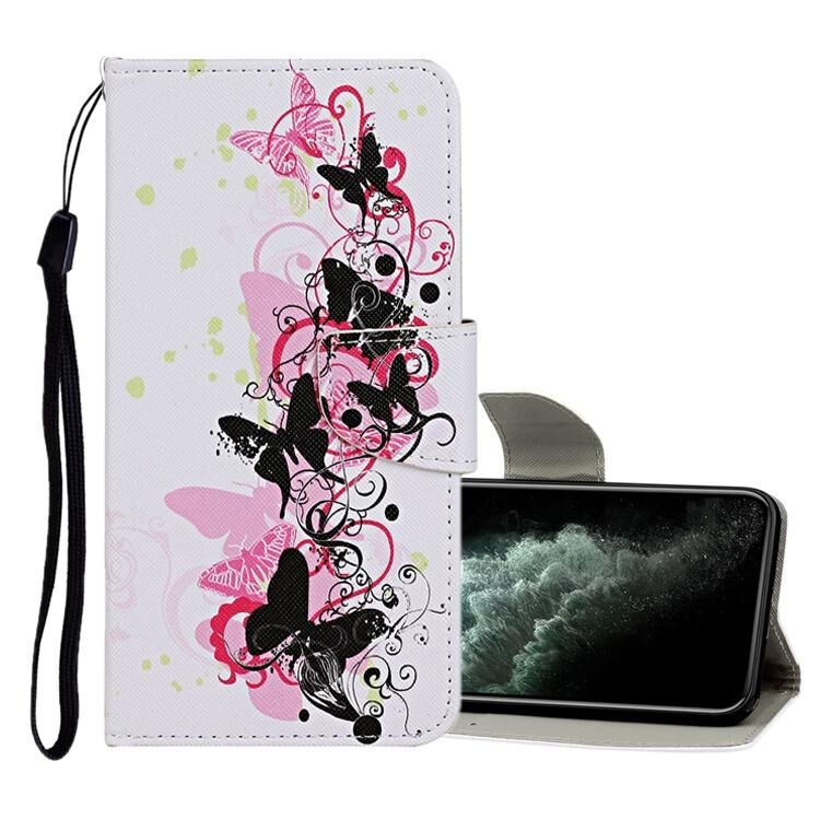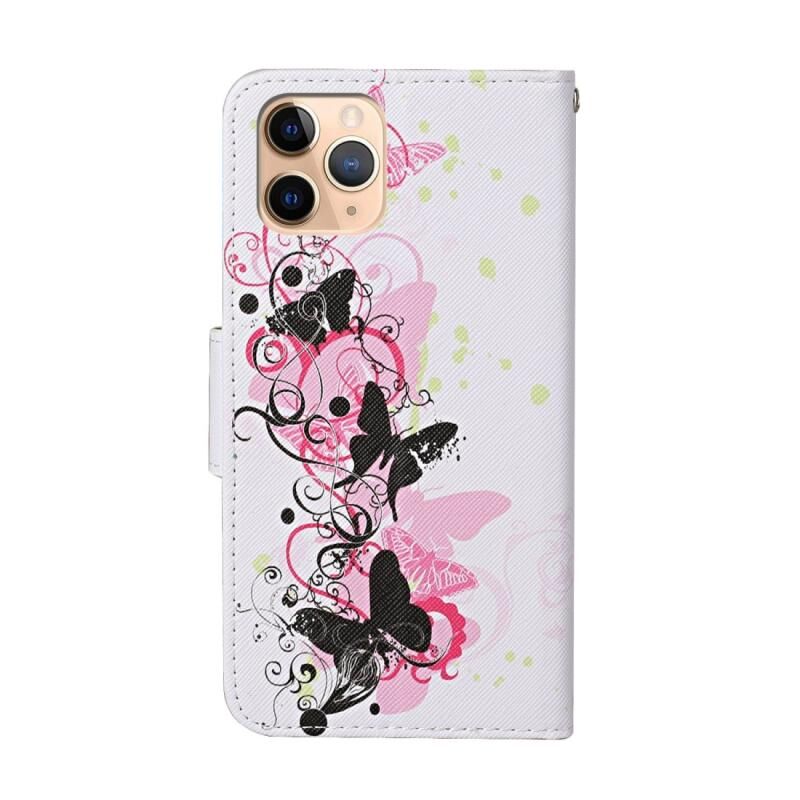Θήκη δέρματος οριζόντιας αναδίπλωσης με σχέδιο πολύχρωμης ζωγραφικής για iPhone 11 Pro Max με βάση & υποδοχές καρτών & πορτοφόλι (Τέσσερα Πεταλούδες)