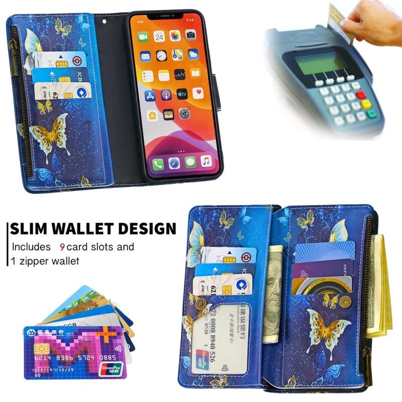 For iPhone 11 Pro Max Colored Drawing Pattern Zipper Horizontal Flip Leather Case with Holder & Card Slots & Wallet(Golden Butterfly)