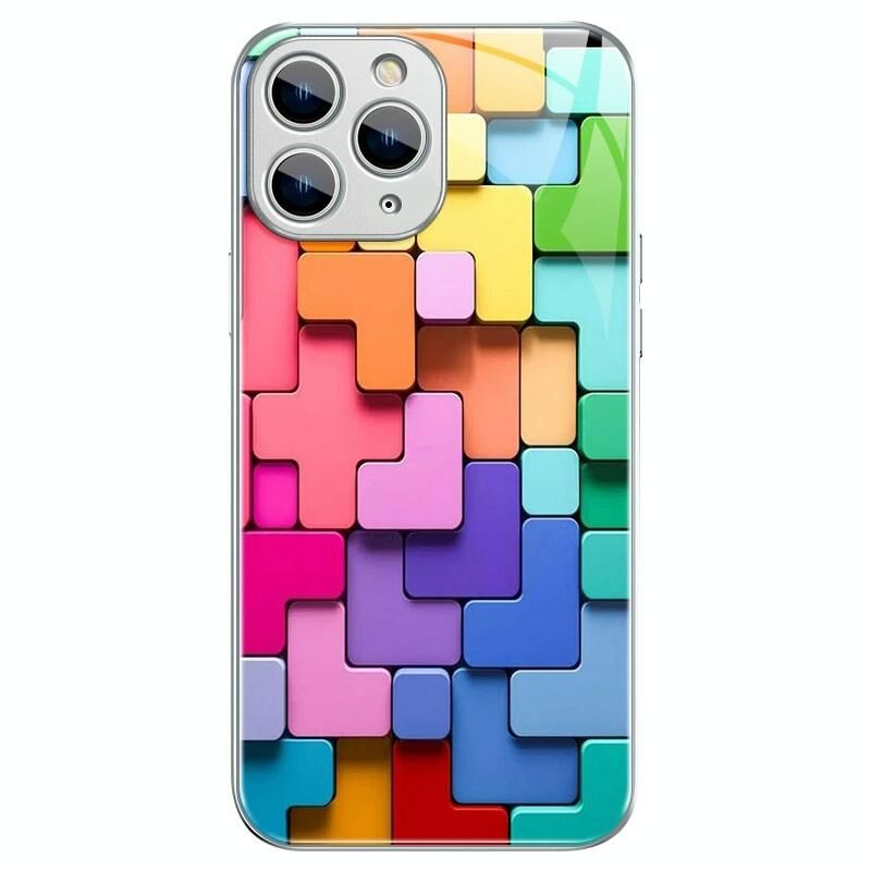 Θήκη τηλεφώνου από γυαλί αντικραδασμική για iPhone 11 Pro Max με πολύχρωμο σχέδιο τουβλών παιχνιδιού (Ασημί)