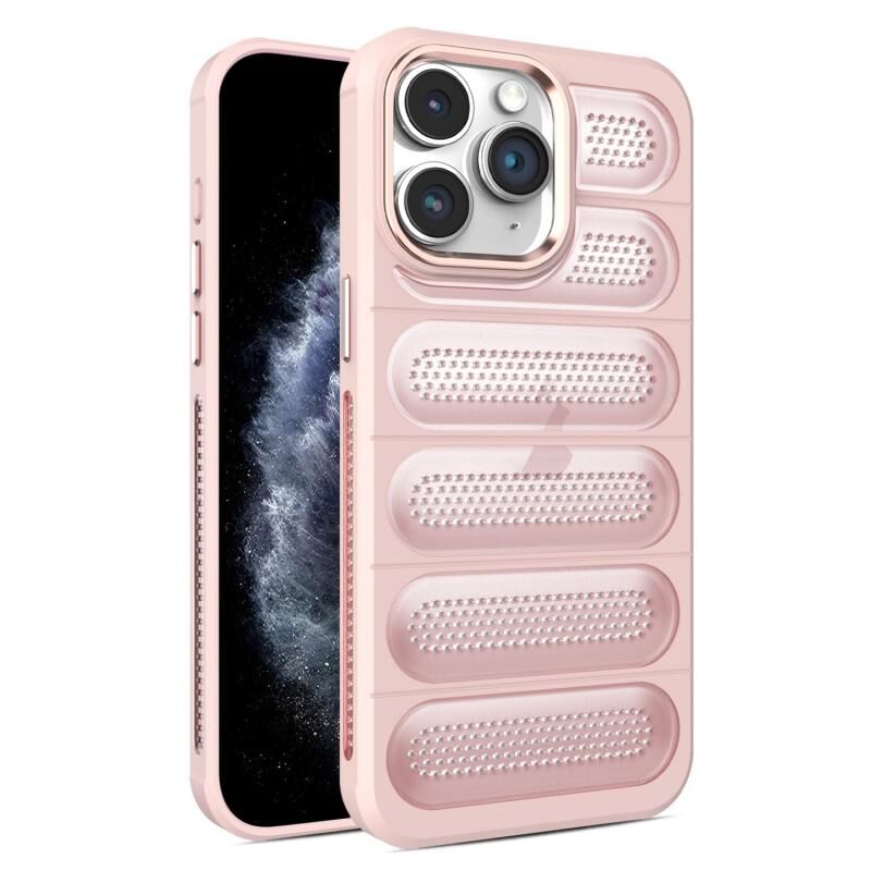 For iPhone 11 Pro Max Cooling Armor Translucent Mesh Breathable Phone Case(Pink)