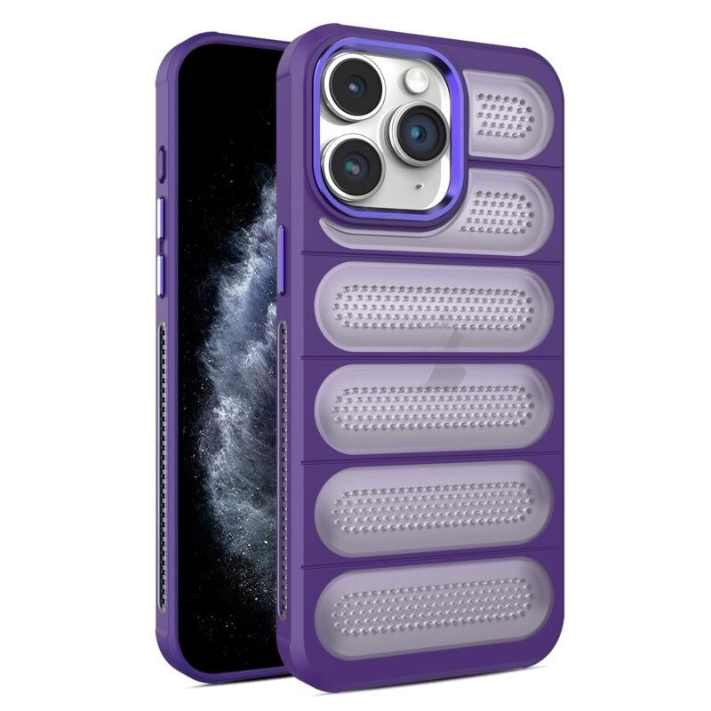 For iPhone 11 Pro Max Cooling Armor Translucent Mesh Breathable Phone Case(Purple)