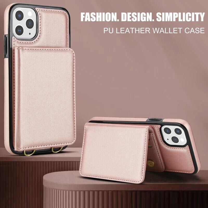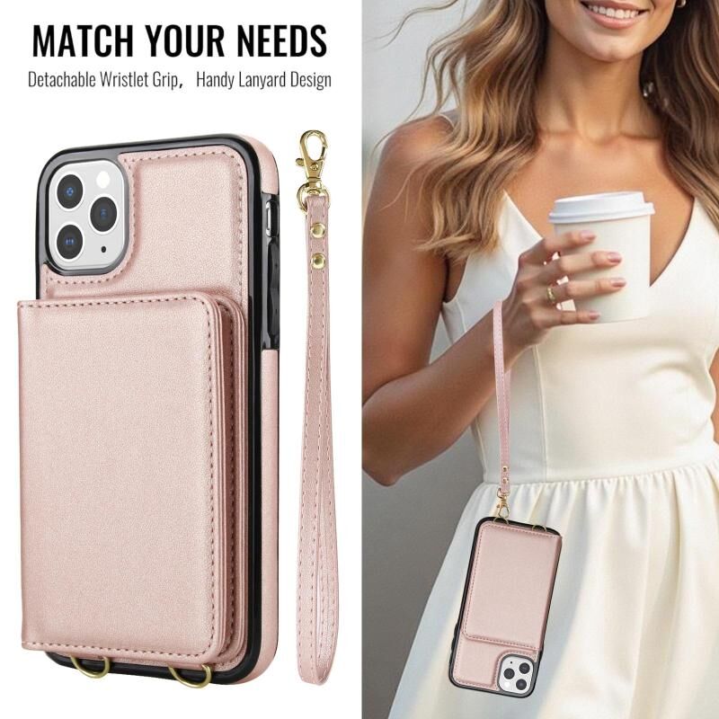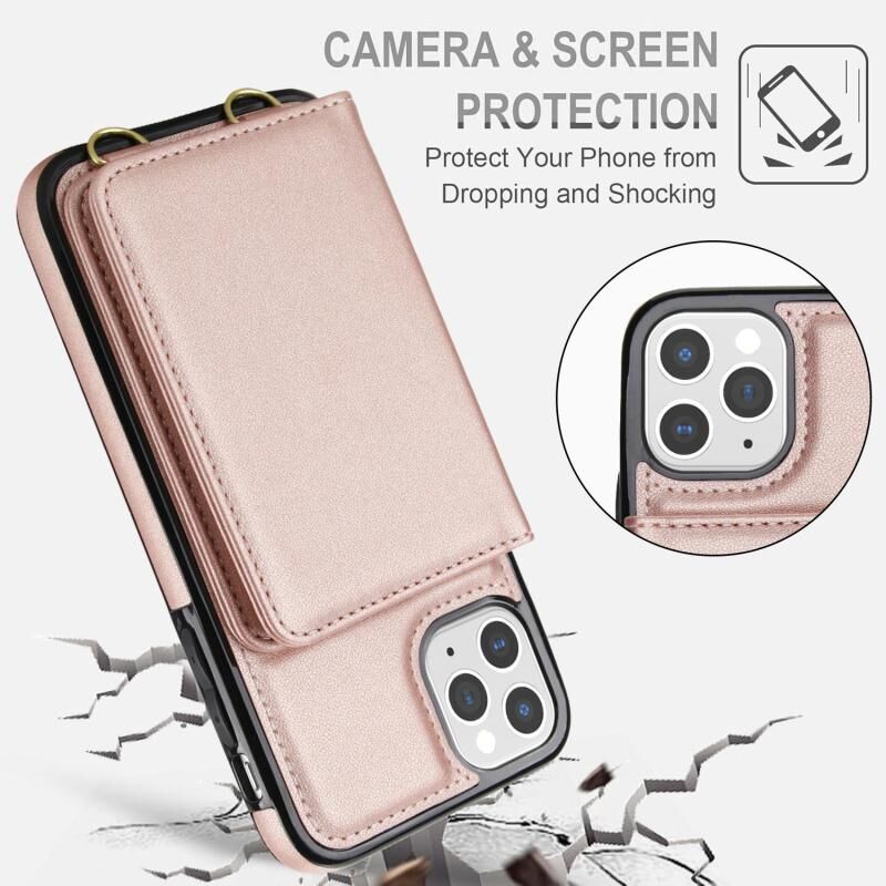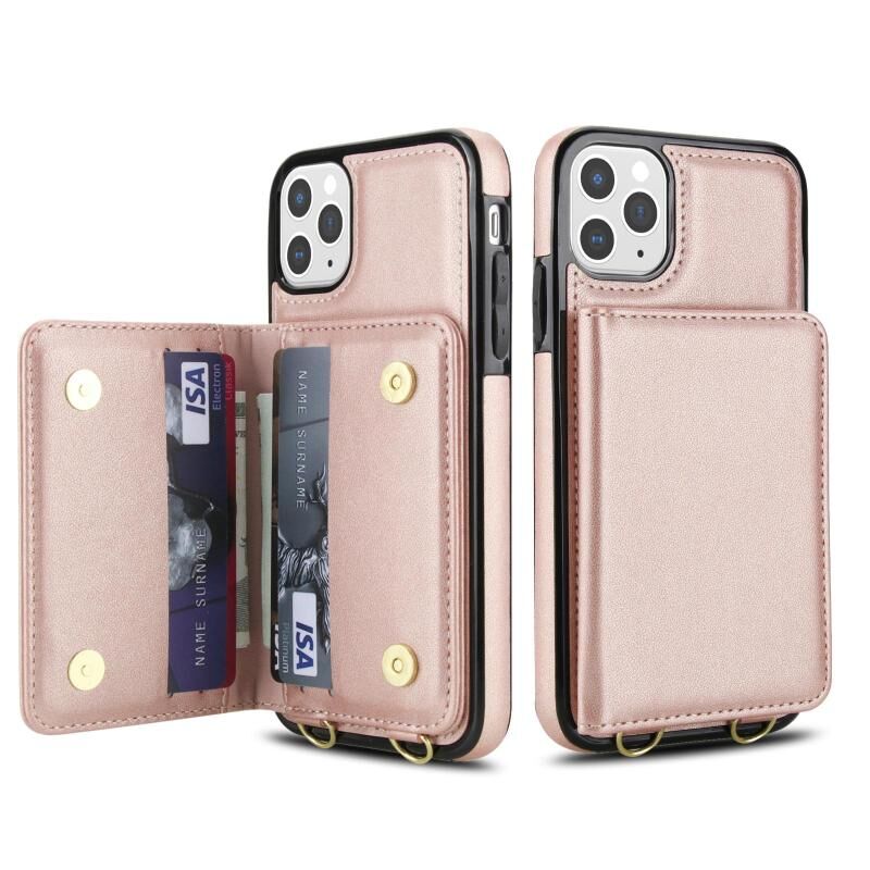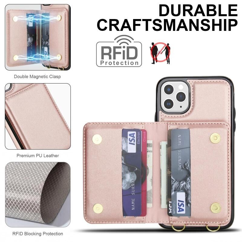 For iPhone 11 Pro Max Crossbody Dual-buckle Wallet RFID Back Leather Phone Case(Rose Gold)