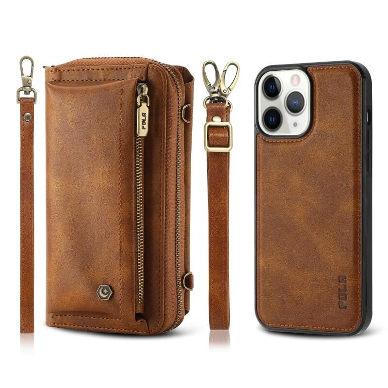Θήκη τηλεφώνου για iPhone 11 Pro Max, δερμάτινη, με πολλαπλές λειτουργίες, φερμουάρ και ιμάντα ώμου (Κόκκινη)