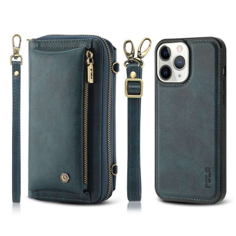 Θήκη τηλεφώνου για iPhone 11 Pro Max, δερμάτινη, με πολλαπλές λειτουργίες, φερμουάρ και ιμάντα ώμου (Κόκκινη)