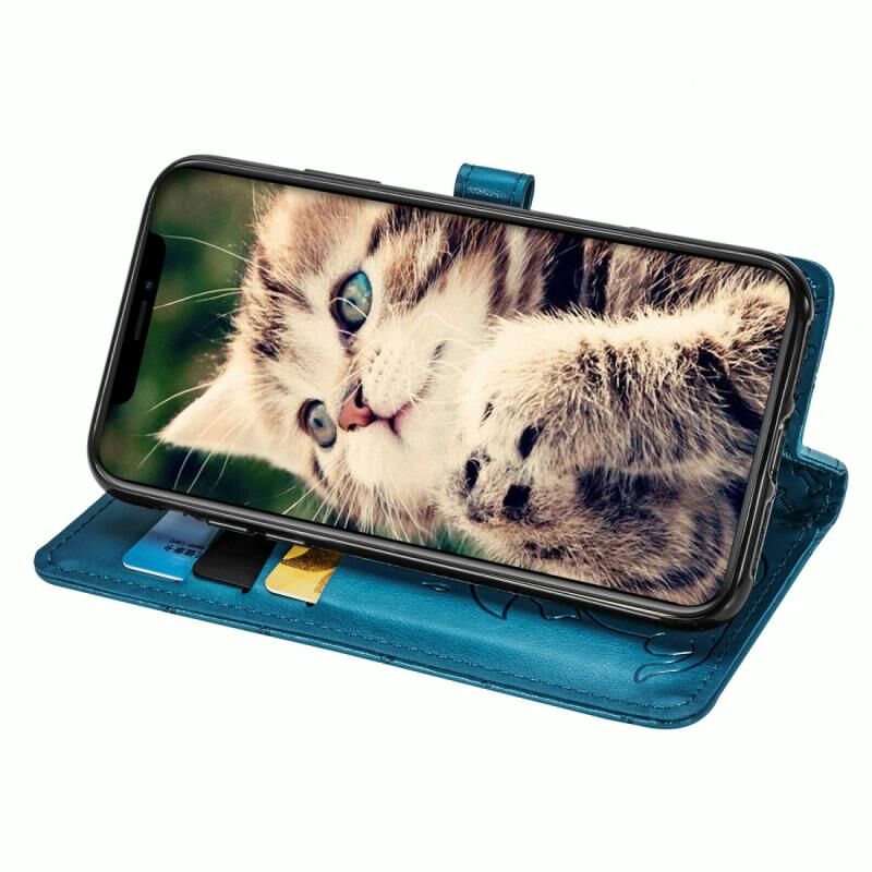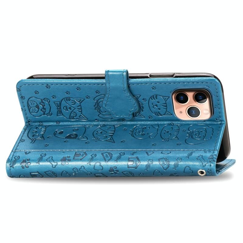 Θήκη για iPhone 11 Pro Max, χαριτωμένη με ανάγλυφα σχέδια γάτας και σκύλου, οριζόντια, από δερματίνη PU με βάση / υποδοχή κάρτας / πορτοφόλι / κορδόνι (Χρυσό Ρόδι)