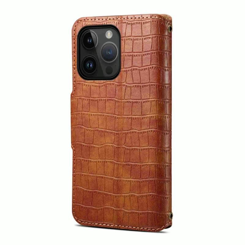 For iPhone 11 Pro Max Denior Crocodile Texture Oil Edge Leather Phone Case(Brown) (Denior)