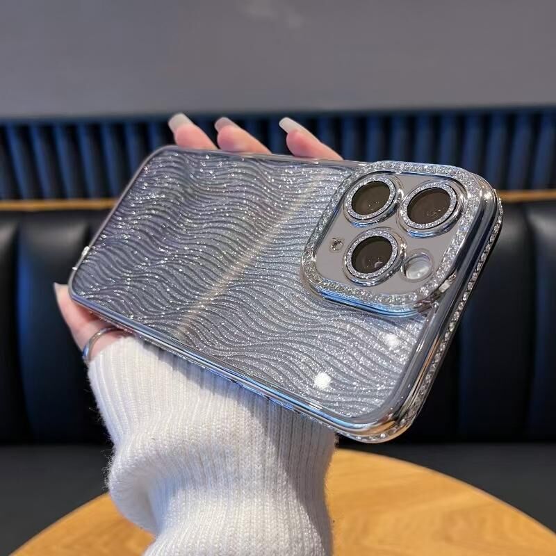 Θήκη τηλεφώνου TPU με διαμαντένια λάμψη και διαβάθμιση νερού για iPhone 11 Pro Max (Ασημί)