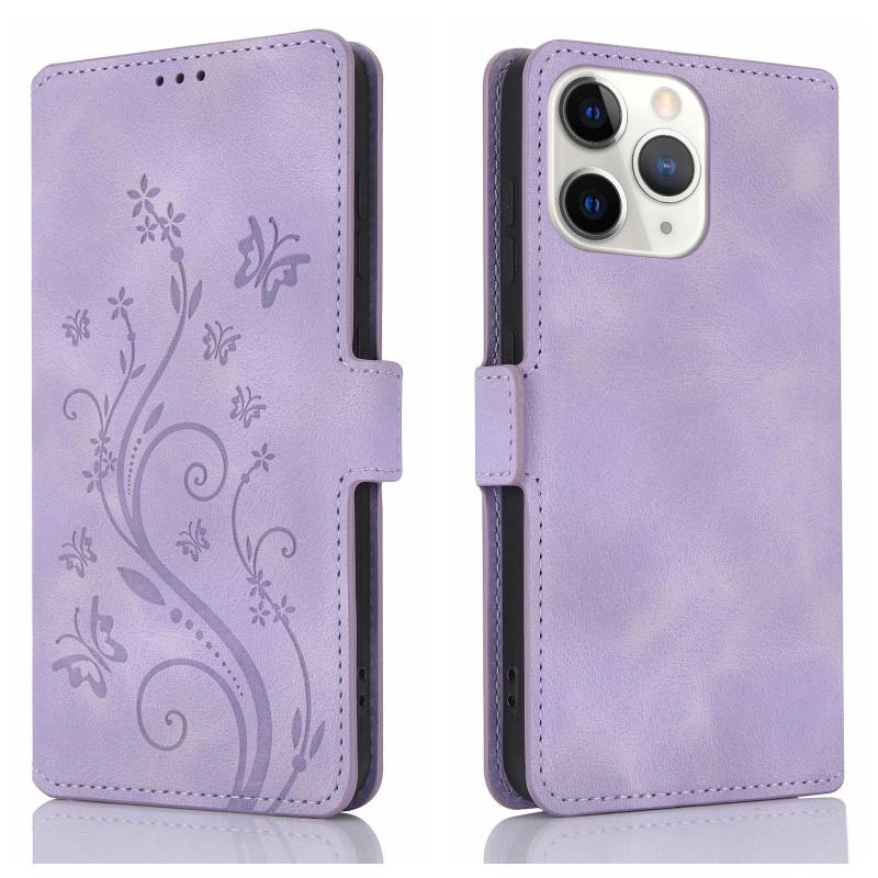 For iPhone 11 Pro Max Dreamy Butterfly Love Flower Embossed Leather Phone Case(Purple)