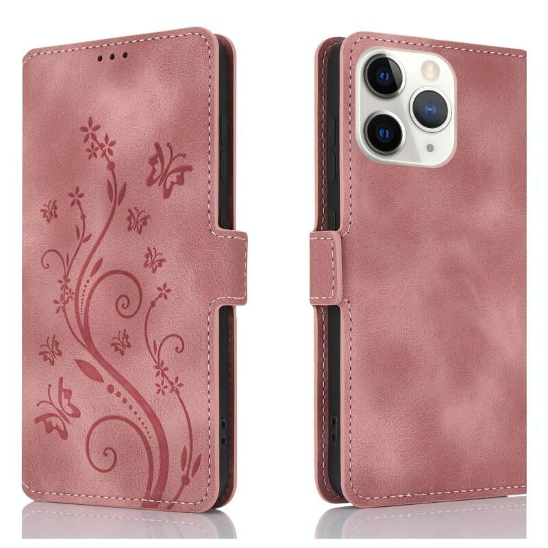 Θήκη τηλεφώνου από δέρμα με ανάγλυφο σχέδιο πεταλούδας και λουλουδιών για iPhone 11 Pro Max (Χρυσό ροζ)