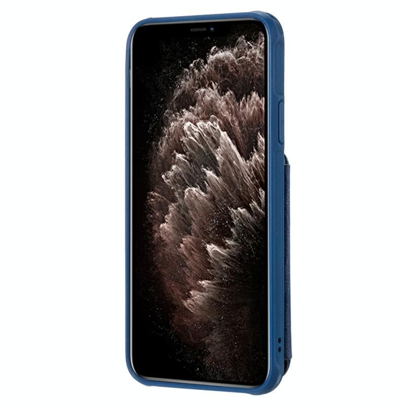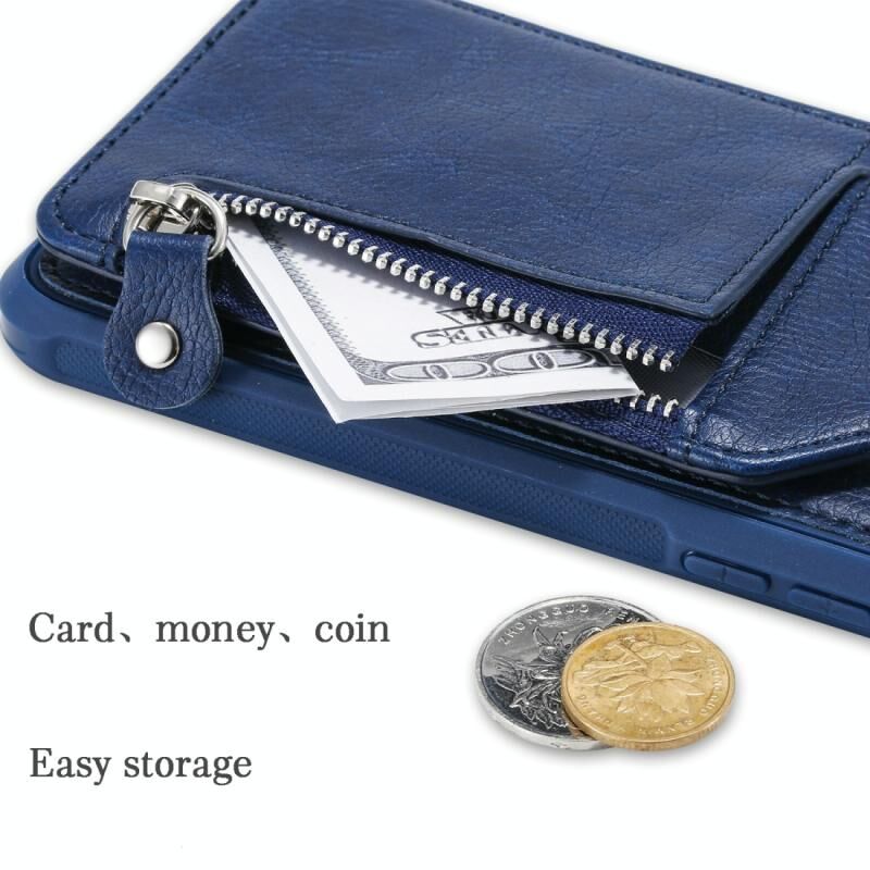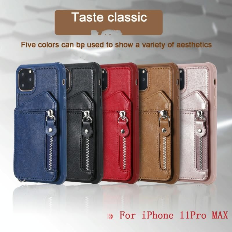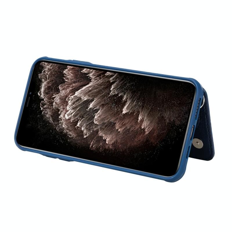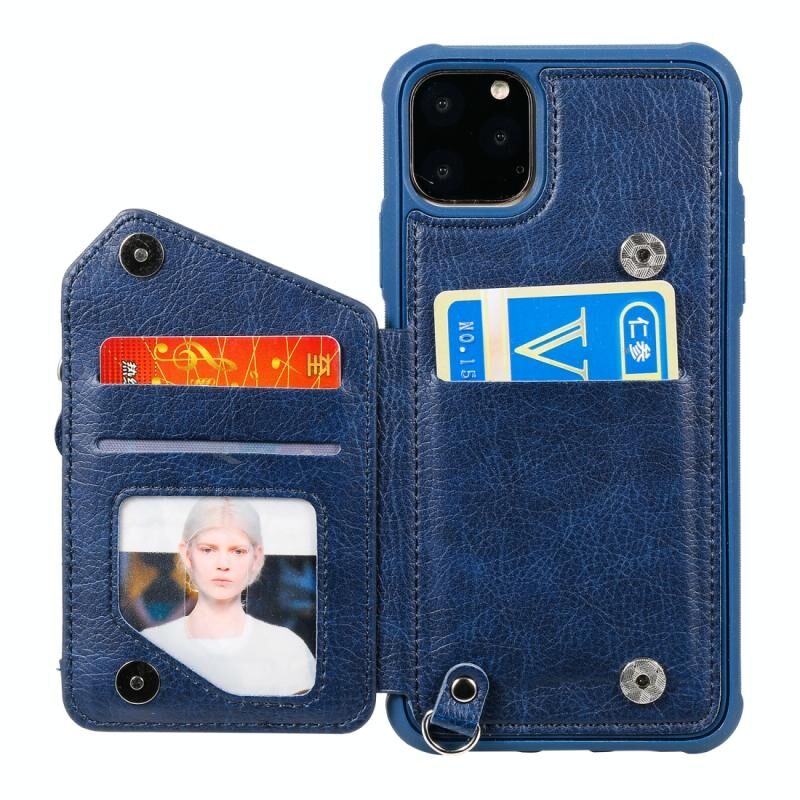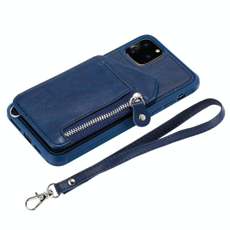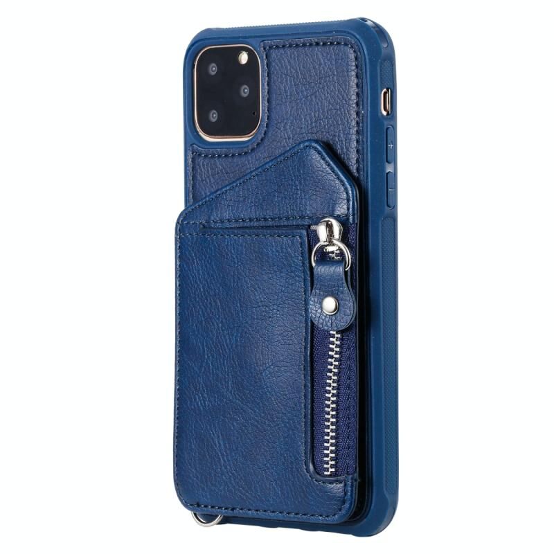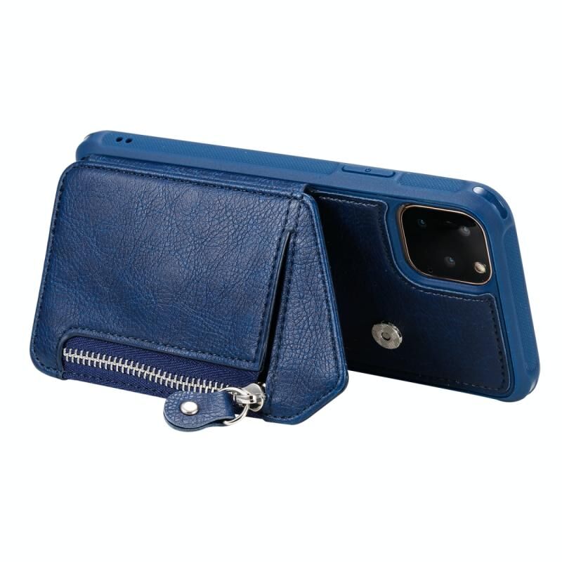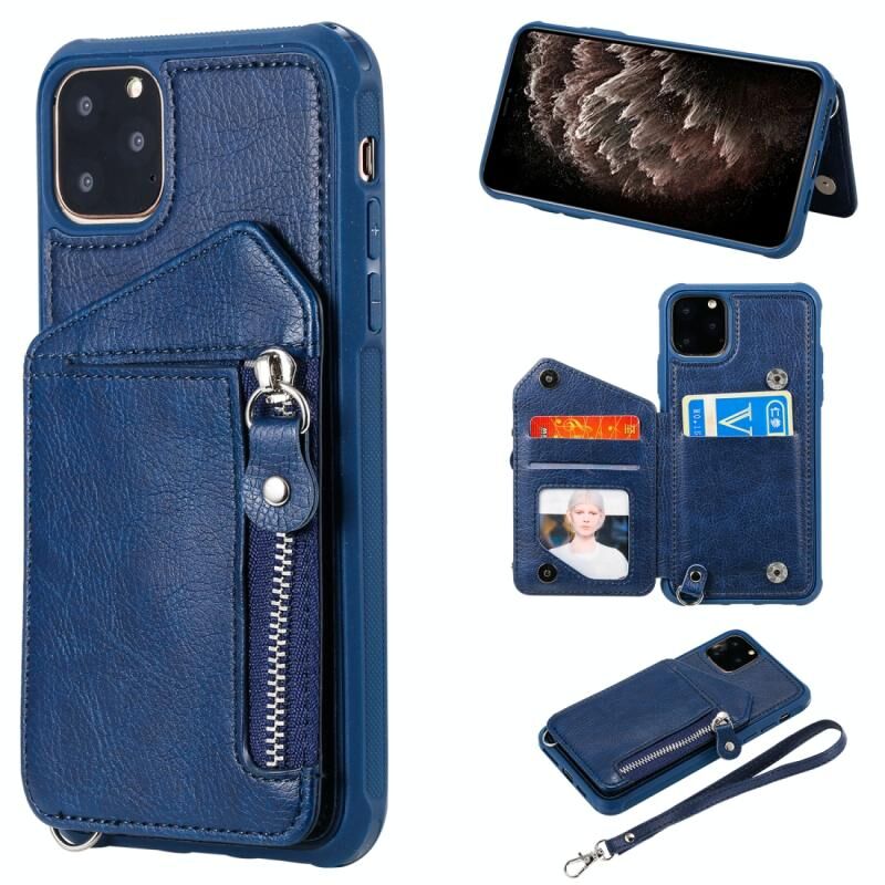 For iPhone 11 Pro Max Dual Buckles Zipper Shockproof Back Cover Protective Case with Holder & Card Slots & Wallet & Lanyard & Photos Frames(Blue)