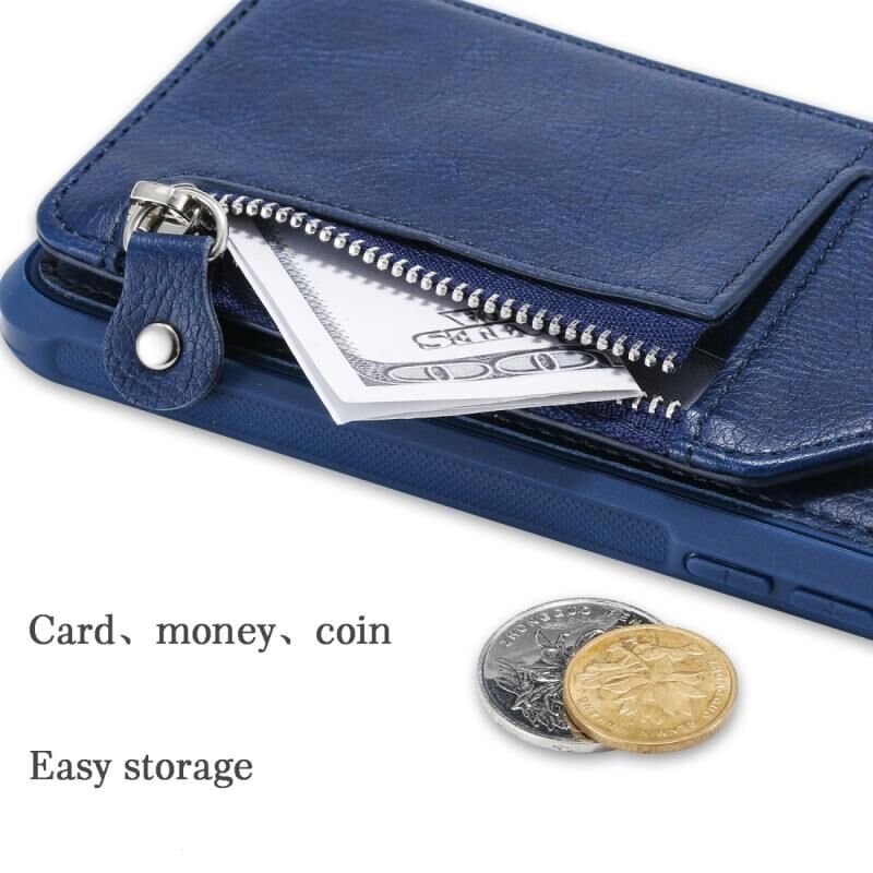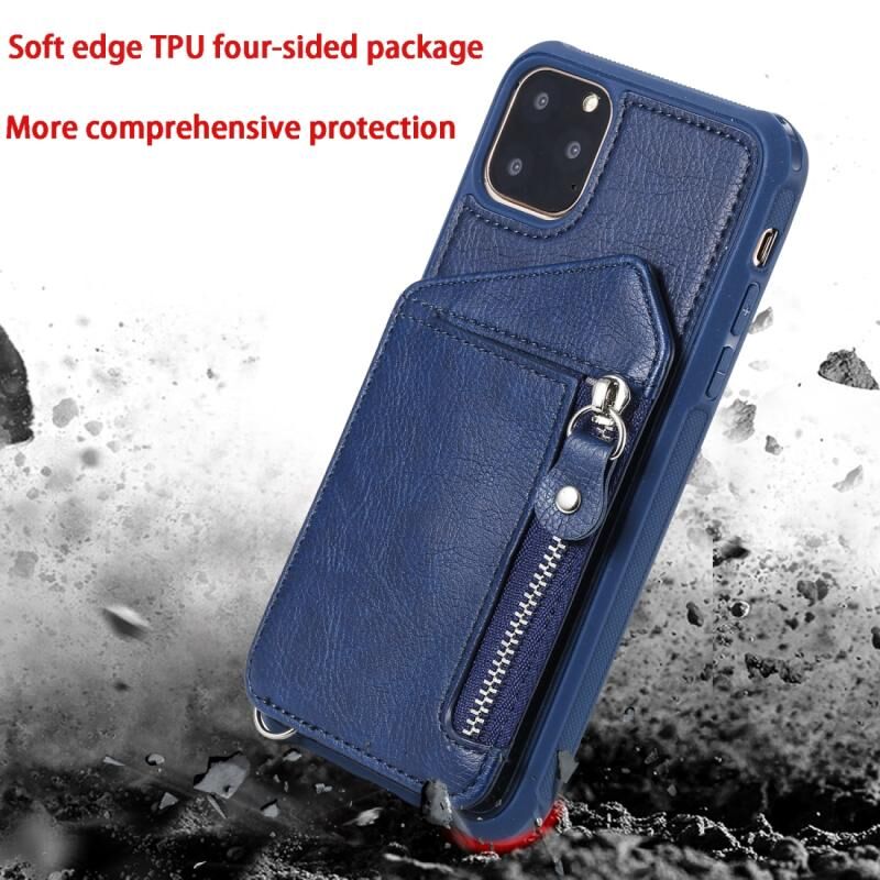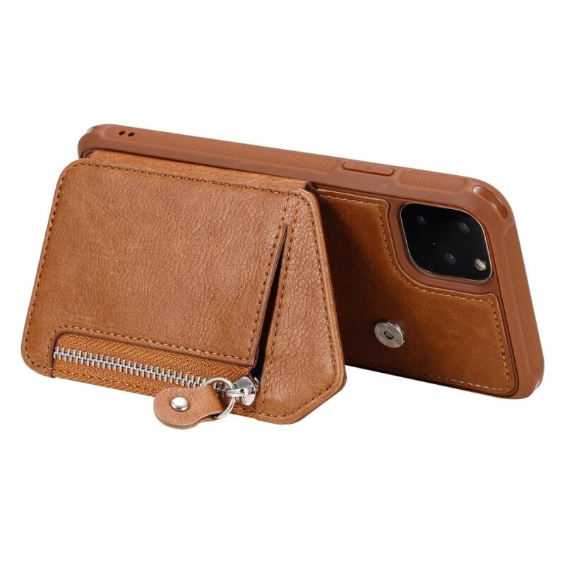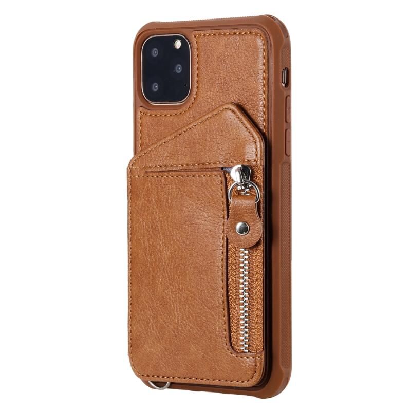 For iPhone 11 Pro Max Dual Buckles Zipper Shockproof Back Cover Protective Case with Holder & Card Slots & Wallet & Lanyard & Photos Frames(Coffee)