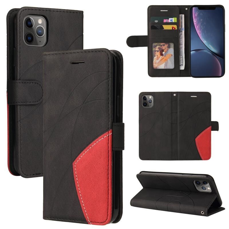 For iPhone 11 Pro Max Dual-color Splicing Horizontal Flip PU Leather Case with Holder & Card Slots & Wallet (Black)